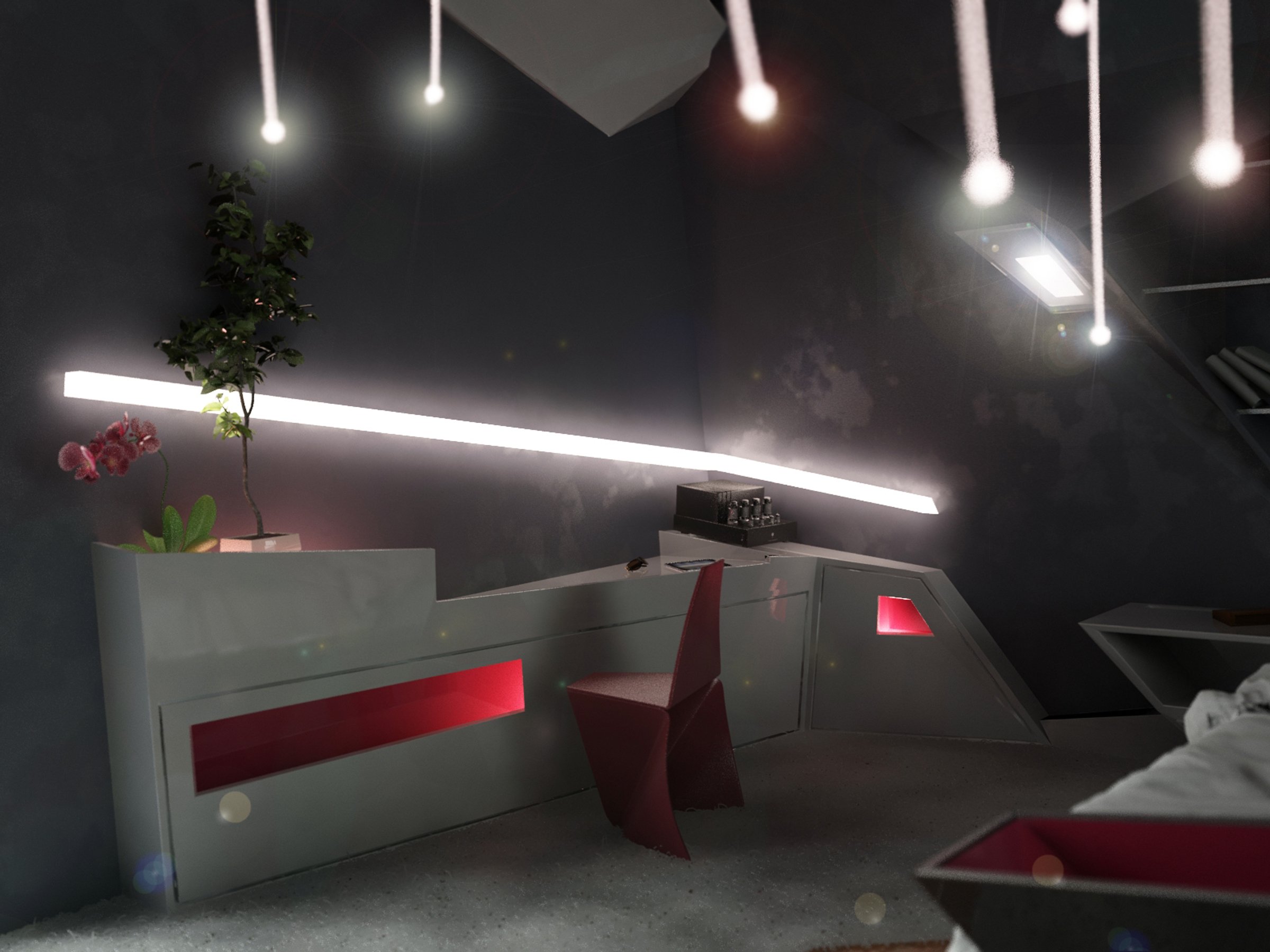 Muebles multifuncionales. Al futurismo no le gusta el uso inútil del espacio, como el minimalismo.