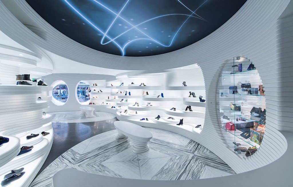 El futurismo está presente en la decoración de muchos edificios "estatales", donde generalmente estudian y desarrollan tecnologías informáticas. El estilo se usa en oficinas y áreas de lobby. El objetivo principal de la decisión de diseño es demostrar que la empresa se dedica a la investigación moderna y se adelanta a su tiempo.