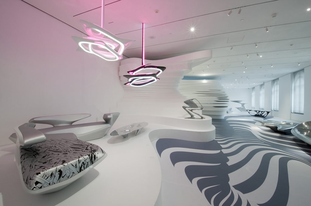 Nueva vida de cosas familiares. No encontrarás armarios o sofás triviales en el futurismo. Los muebles serán menos parecidos a sí mismos: respaldos curvos, formas extraordinarias, combinaciones complejas;
