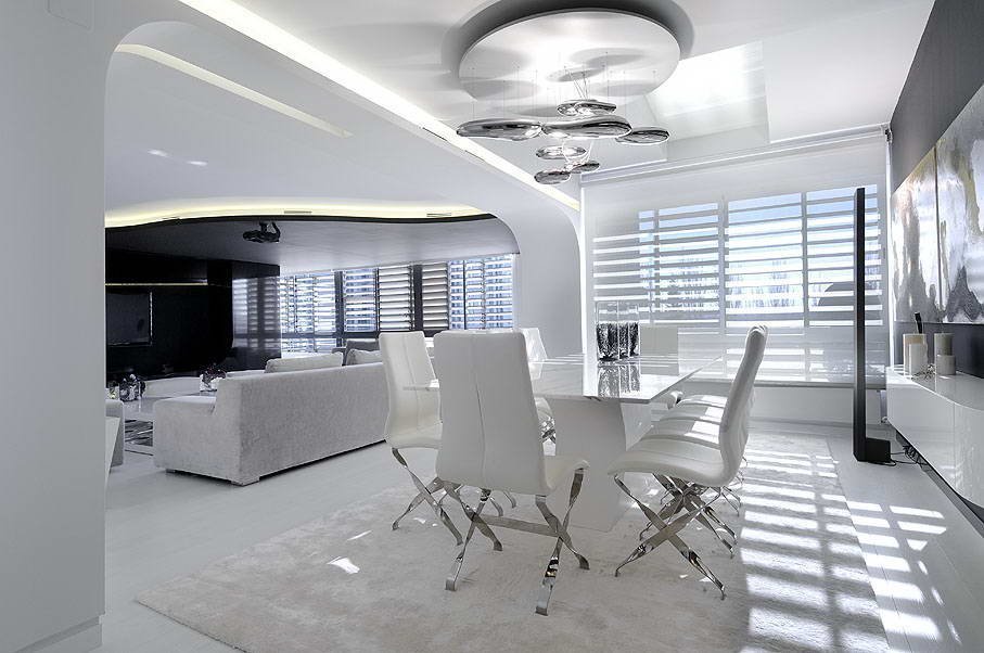 Superficies cromadas, plástico, plexiglás. En la decoración, este estilo es similar al popurrí de alta tecnología e industrial;