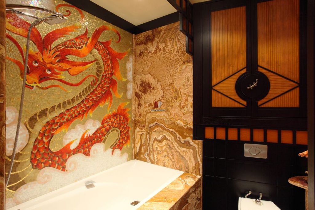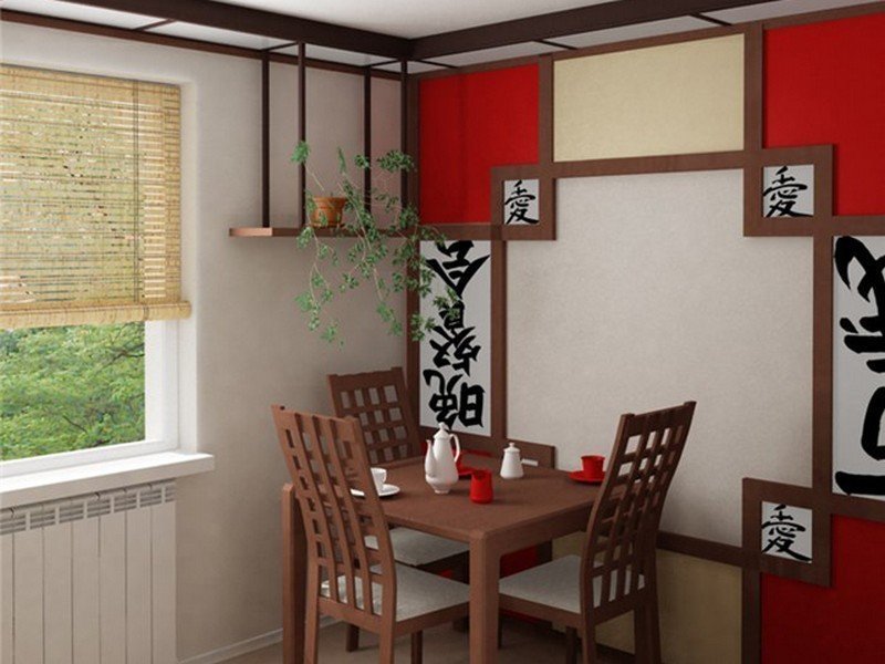 Los temas para la decoración pueden ser muy diferentes: jeroglíficos, montañas, árboles elegantes y plantas con flores, dragones y pájaros, pagodas, fenómenos naturales. El color dominante en las paredes sigue siendo rojo y amarillo: estos son los colores del fuego que encarnan la inspiración y el desarrollo. Para diseños más sobrios, puede usar tonos marrones. En el feng shui, las paredes de esos colores atraerán riqueza y buena fortuna a la casa.