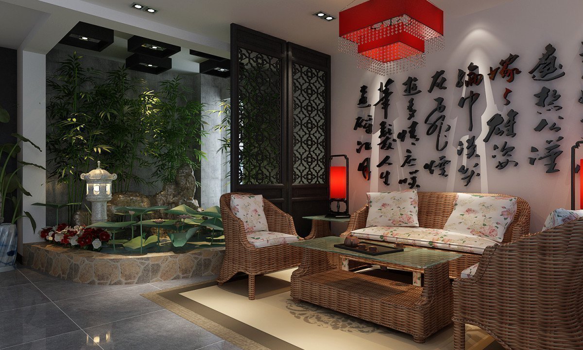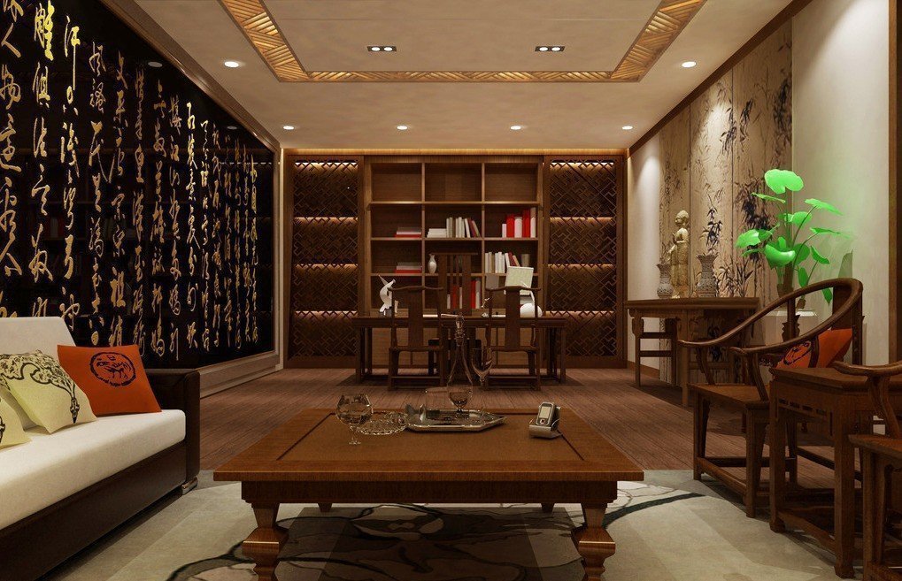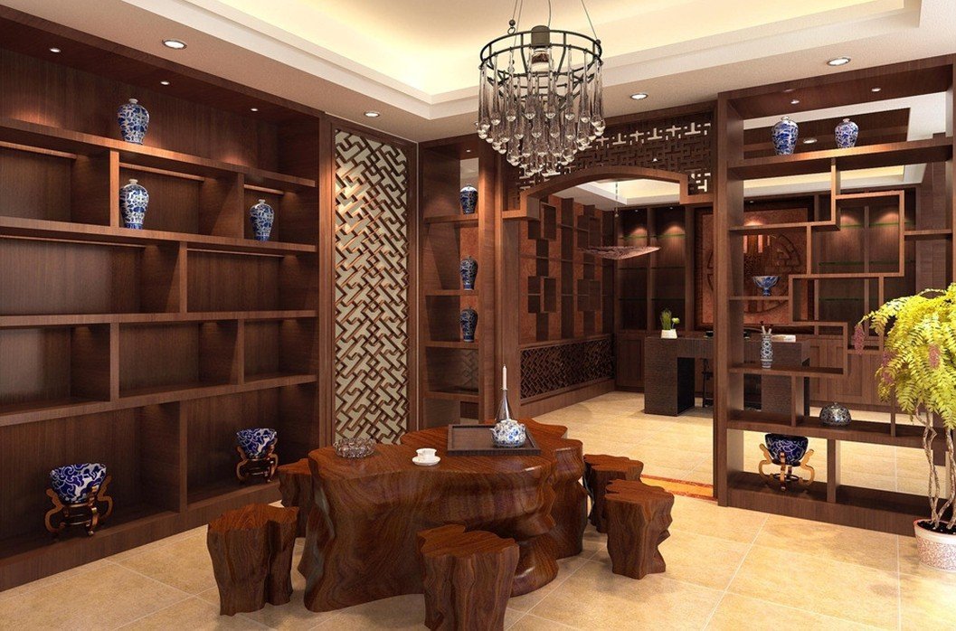 la decoración tradicional china se materializa en caligrafía, esculturas grandes y pequeñas de budas y animales hechas de piedra natural, pintura de laca, alfombras chinas naturales y obras de pintura nacional;