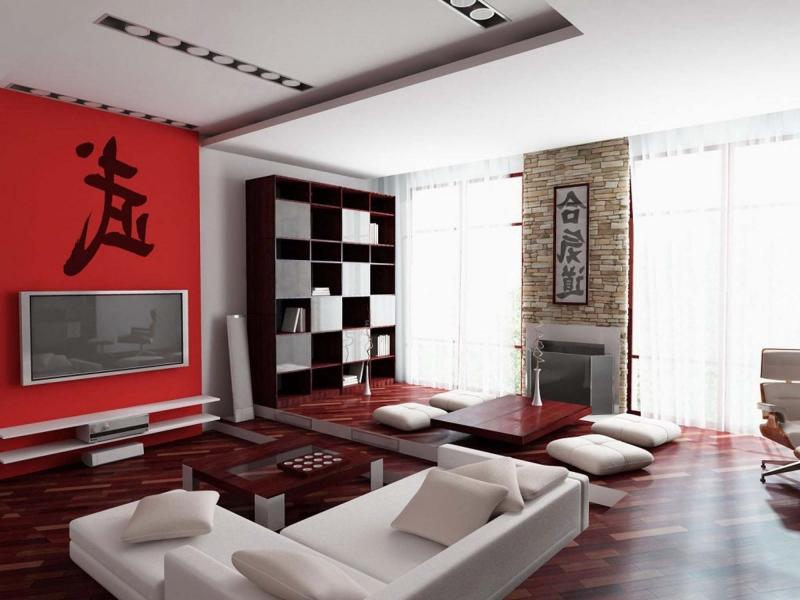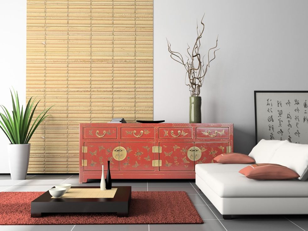 El diseño del interior chino es propicio para la introducción de colores llamativos. Uno de los colores favoritos en el Reino Medio es el rojo. Los chinos creen que el rojo es el color del bienestar, un color que trae buena suerte. Como colores de acento, se puede usar dorado, amarillo y azul.