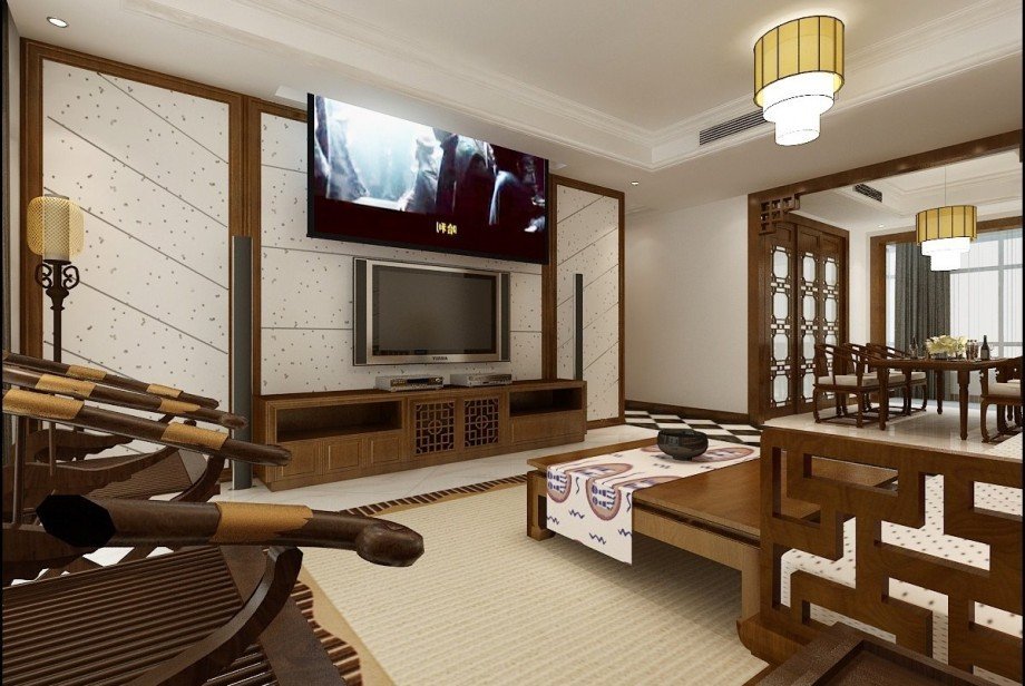 La sala de estar de estilo chino es la sala delantera para recibir invitados. Todo aquí debe ser rico, bello y solemne. Para suelos, es adecuado el parquet ligero o el laminado debajo de un árbol. Las paredes están pegadas con papel de bambú o papel con dibujos de la pintura tradicional china. La decoración con paneles de madera e incluso lienzos de bambú encaja perfectamente en el estilo formal ceremonial.
