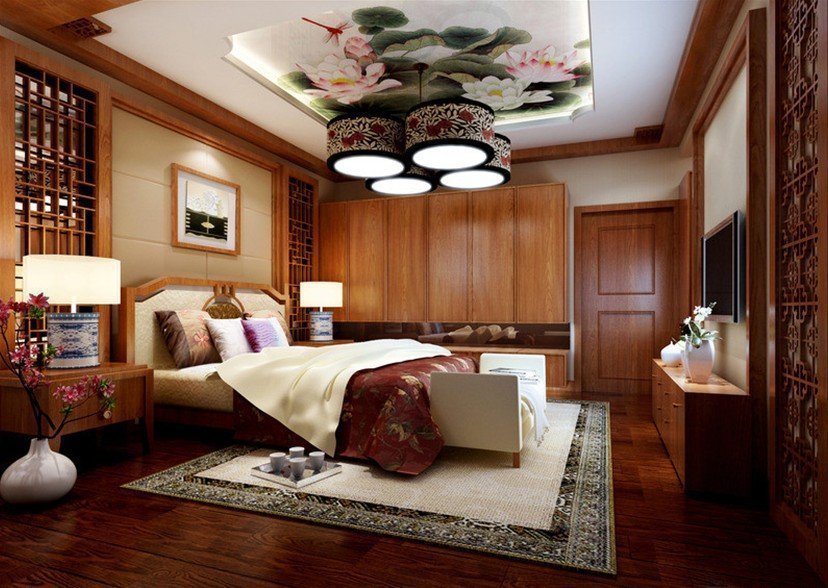 Hacer una habitación al estilo chino no es fácil. La cuestión es que las camas tradicionales en China son literalmente una habitación en una habitación. Tienen su techo y cercas a lo largo de los bordes, cubiertas con ricos textiles y garantizan total privacidad a la persona que duerme. Tal cama a menudo está en el centro de la habitación. Por supuesto, lograr ese lujo en una habitación pequeña no tendrá éxito. Si no es posible llevar el elemento principal del estilo a la habitación, puede usar una variedad de decoraciones que enfatizan su estilo: coloque una pantalla, bloquee el lugar para cambiarse de ropa, cuelgue un gran ventilador con la imagen de grullas volando sobre la cama. Será útil colgar fotografías o una imagen que represente un loto en la pared: la flor representa la perfección y la armonía.