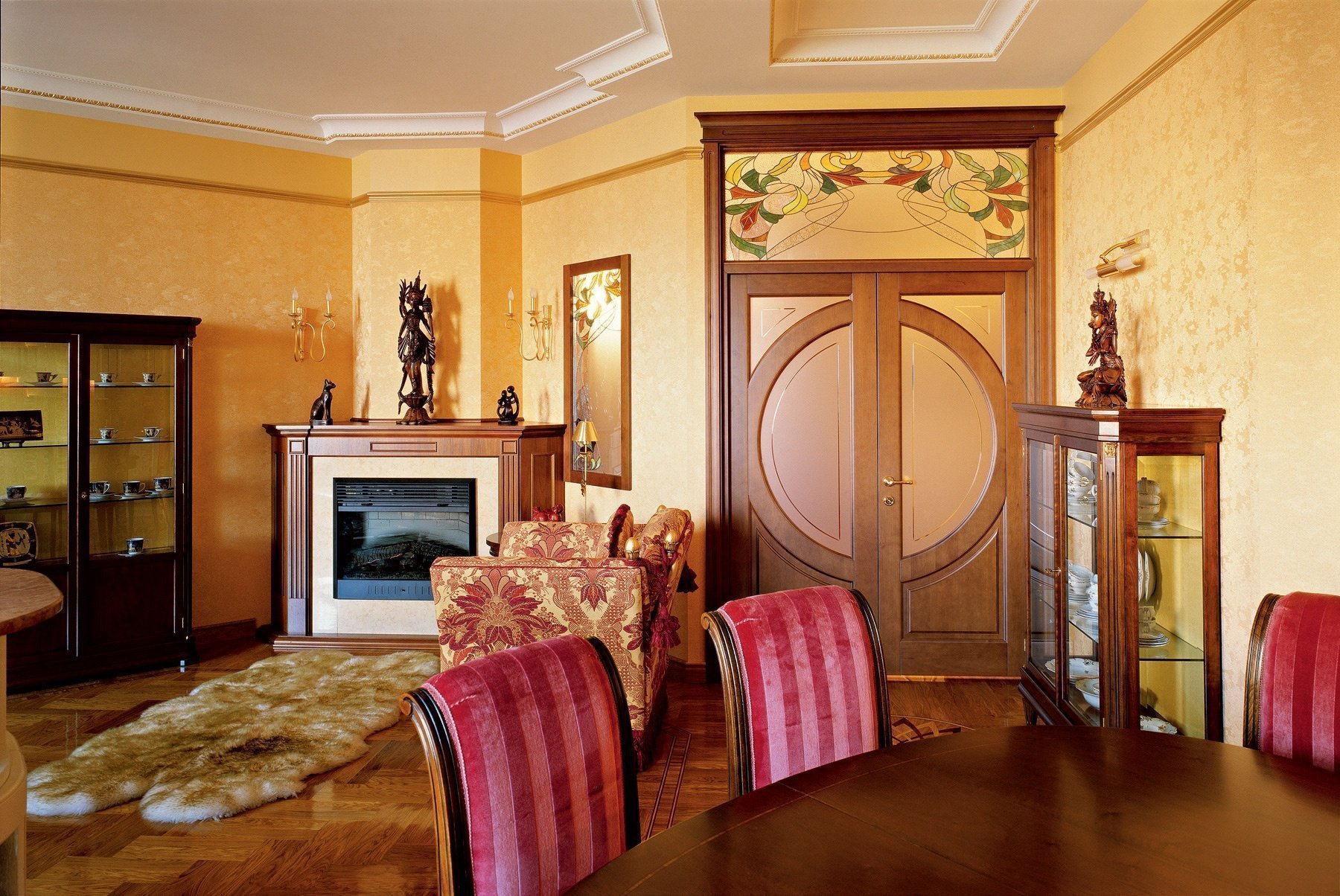 Los nichos decorativos en las paredes están llenos de placas de metal en posavasos, cajas elegantes, candelabros con patas macizas, floreros, jarras de arcilla y cuencos. Las ventanas altas están decoradas con rejas de metal negro. En climas cálidos, rara vez están cerrados, por lo que el elemento es más necesario para proteger contra invitados no invitados.