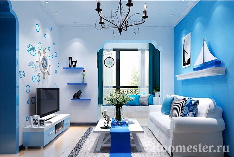 Los sujetos marinos se pueden ver en apartamentos modernos con bastante claridad. Cualquier persona que ingrese a esta sala comprenderá de inmediato la idea estilística, y todo porque el diseño tiene características distintivas brillantes.