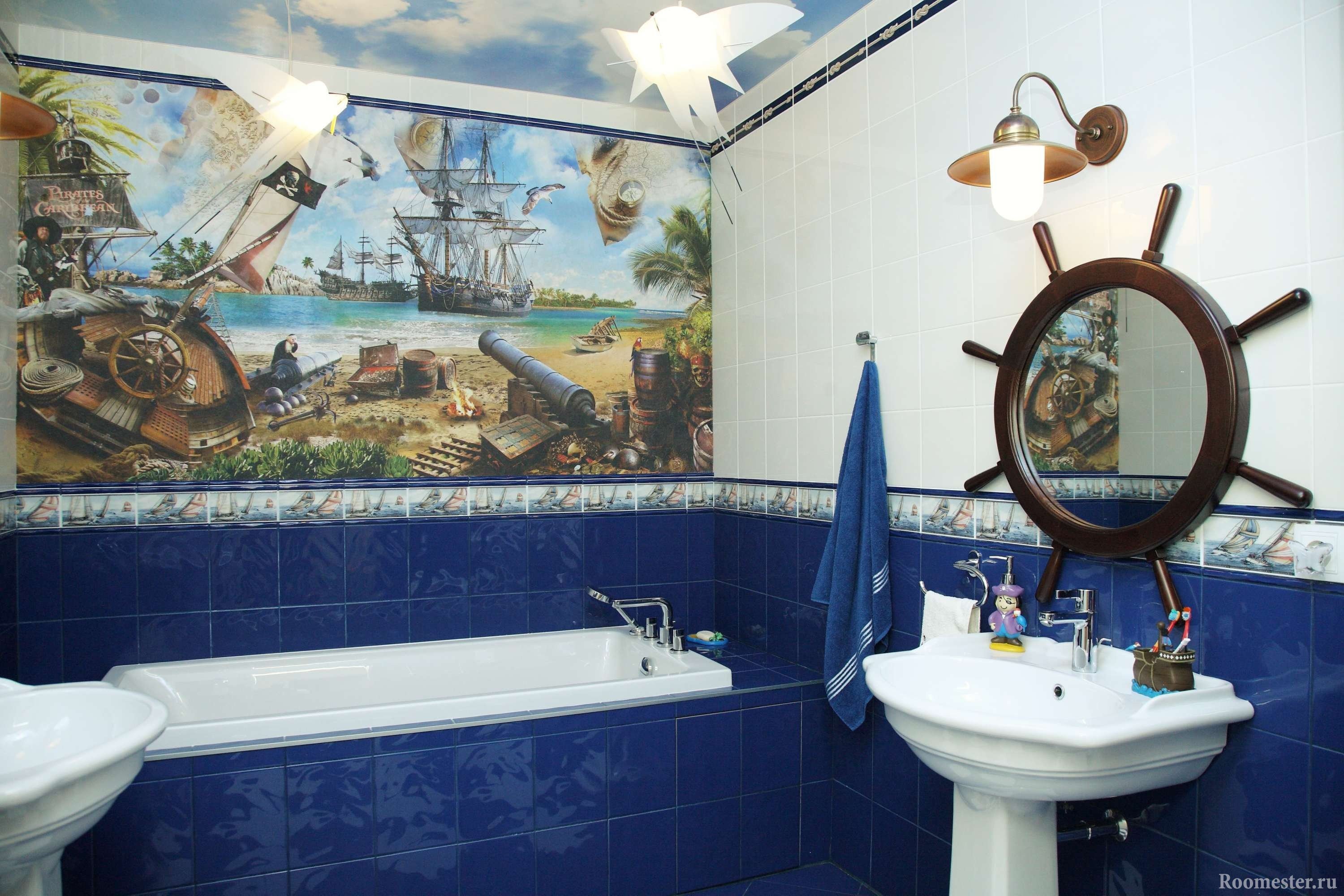 Cualquier habitación se puede decorar en un estilo marino, pero los baños o los niños se ven más ventajosos. A veces decora los dormitorios y las salas de estar.