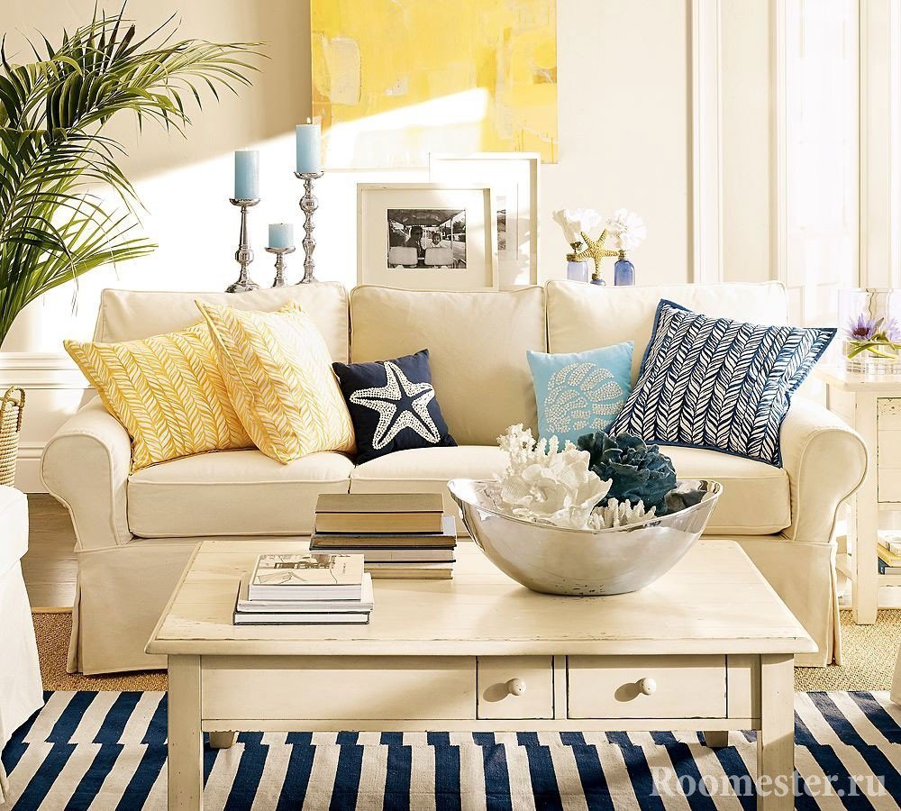 El interior mediterráneo, a pesar de su simplicidad, concisión, es muy rico en adornos y texturas. Afecta la influencia de Turquía, Marruecos, otros países árabes y asiáticos. Esto es especialmente cierto para los textiles. Use solo telas naturales: lino, algodón. En el dormitorio, puede usar encaje de algodón hecho a mano en la cama o bordados. En Marruecos, hacen hermosas alfombras tejidas que agregan color, le dan un toque especial a su hogar, y muchas almohadas esparcidas por el piso y sofás bajos le informarán de inmediato que pronto recibirá el té.