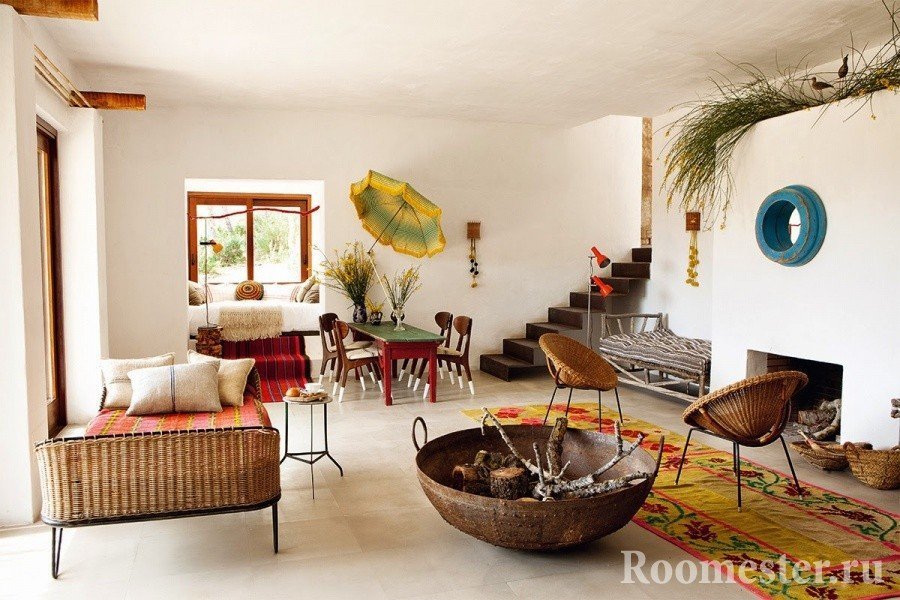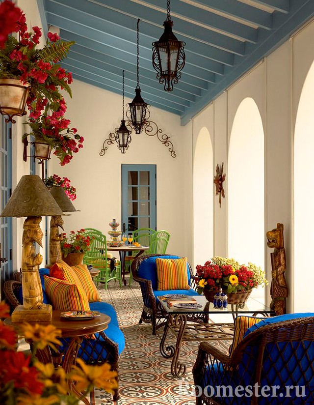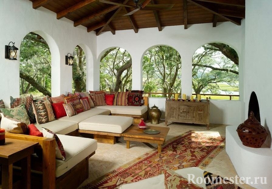 Y si agrega adornos nacionales, entonces las casas en el estilo mediterráneo se vuelven especiales y únicas, obtienen un encanto encantador, introducen un estilo de vida nacional, tradiciones.