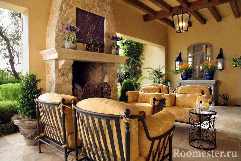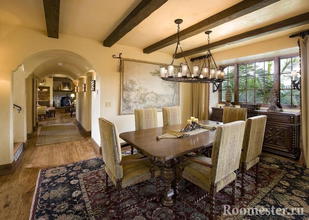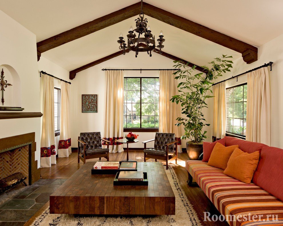 Hubo un tiempo en que el mundo árabe tuvo una influencia muy fuerte en España. Esto también afectó el diseño de las viviendas de los españoles en el estilo mediterráneo. Se manifiesta por adornos, mosaicos en el piso, muy a menudo se encuentran baldosas de cerámica finamente pintadas, que en realidad son árabes. El estilo español se distingue por los tonos terracota, blanco, azul, con menos frecuencia verde, rojo, que complementan la gama en aras del énfasis. Los españoles tienen una gran escasez de madera, por lo que prácticamente no se usa. Pero otros materiales naturales (arcilla, piedra, tela) se utilizan en todas partes. El mobiliario es simple, estricto, y las casas emiten techos bastante bajos.