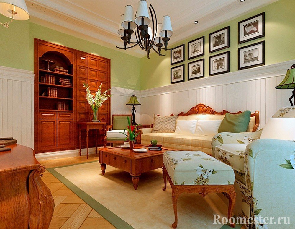 La dirección francesa se distingue por capas, servilletas de encaje y otras labores de aguja.Mesas de mimbre, sillas, así como una paleta de colores más amplia, también se destacan. El interior siente el sueño francés y el romanticismo.