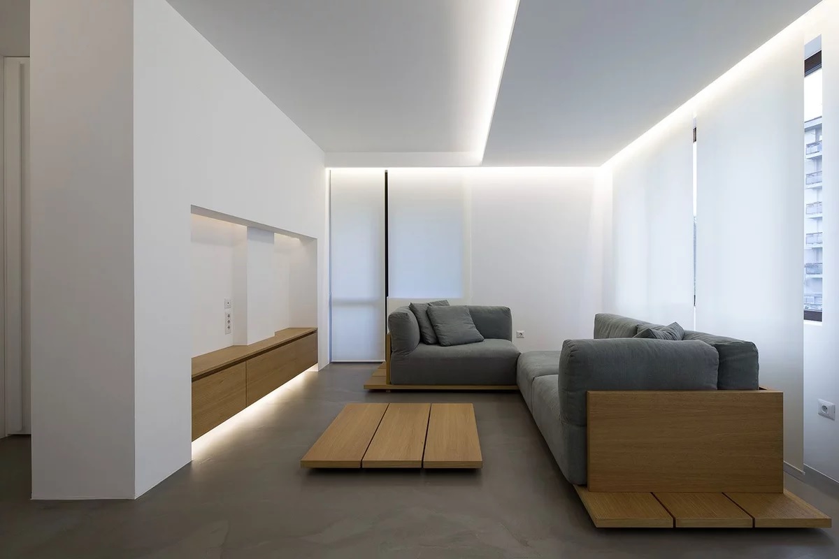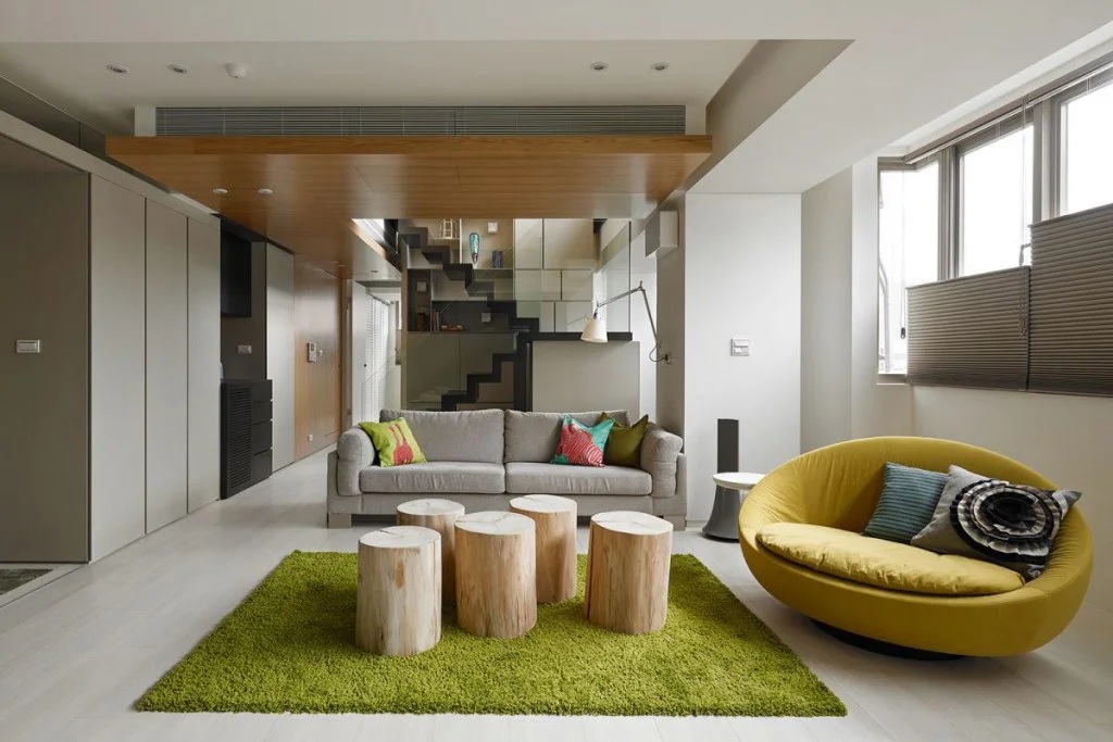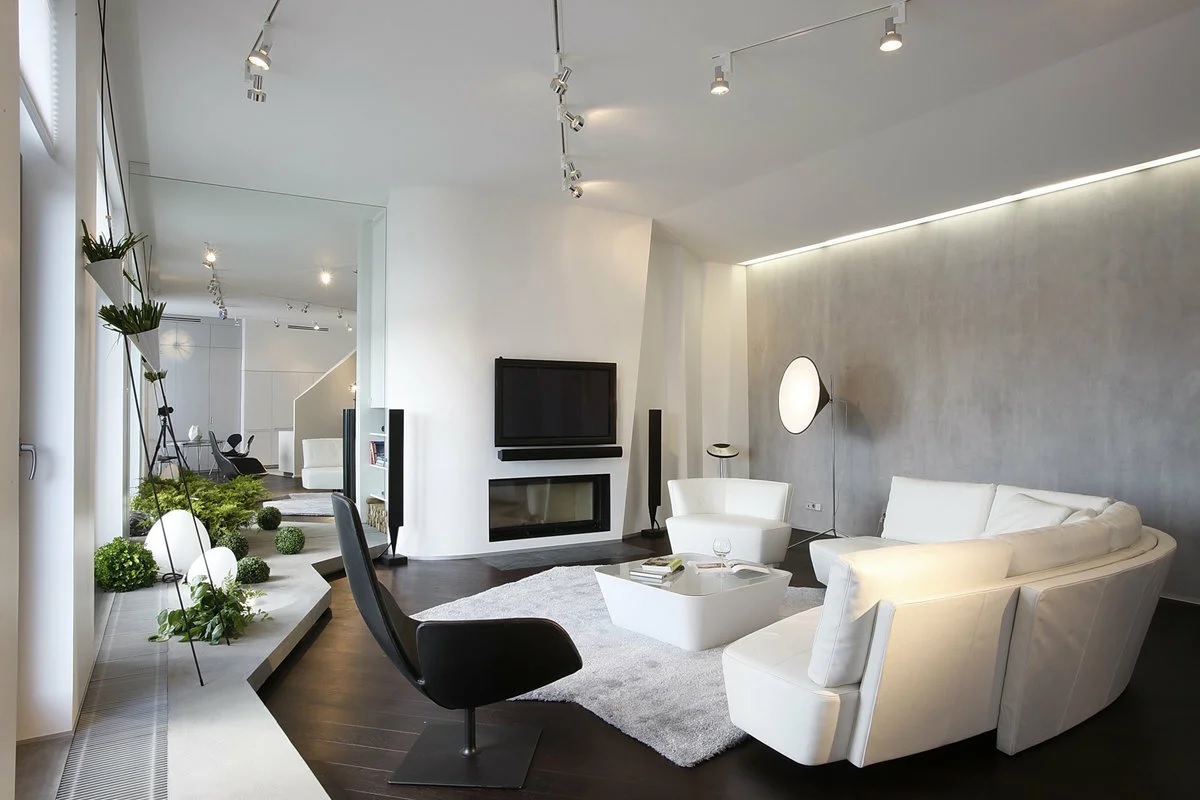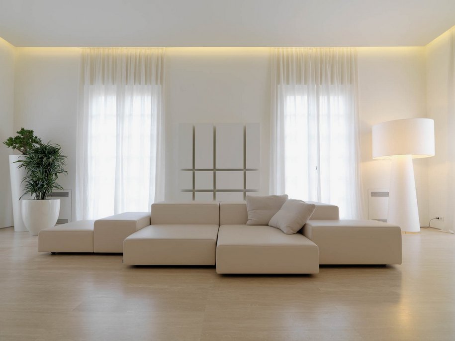 Antes de comenzar el diseño de la habitación en un estilo minimalista, el espacio debe optimizarse. En una habitación pequeña, el área se mejora debido a la disposición especial de los objetos y la ubicación de los dispositivos de iluminación. Amplias salas de estar en un estilo minimalista o loft se pueden zonificar con éxito. Hay varias formas de hacer esto: