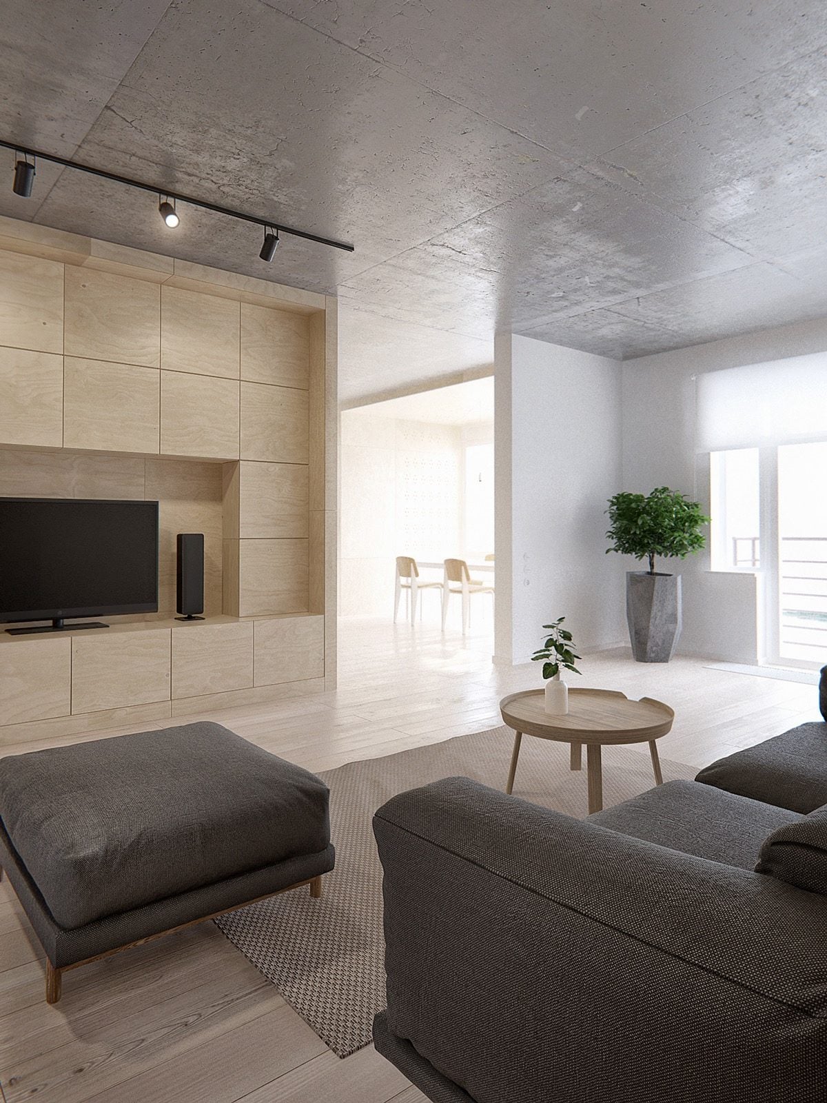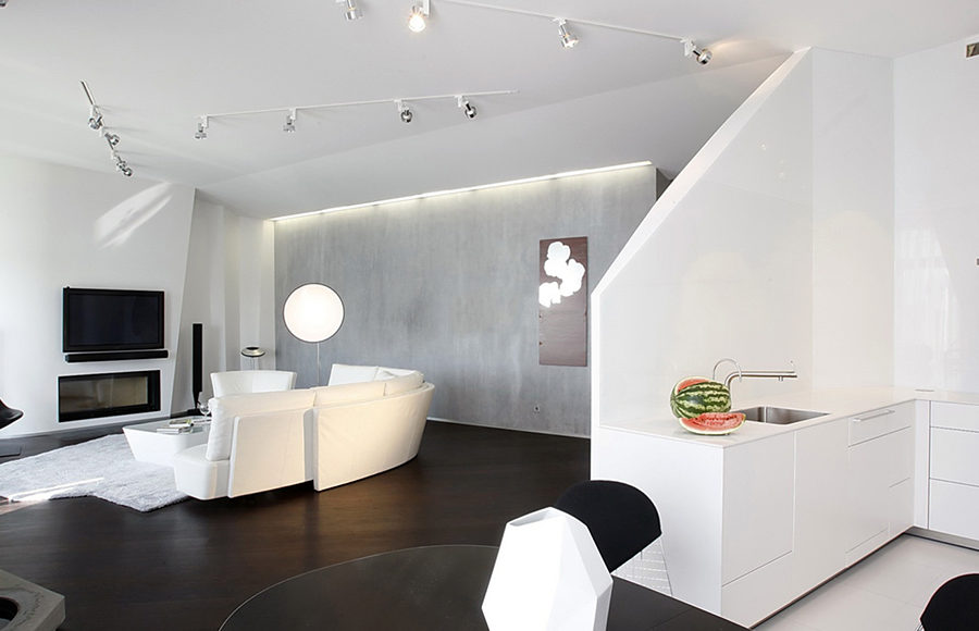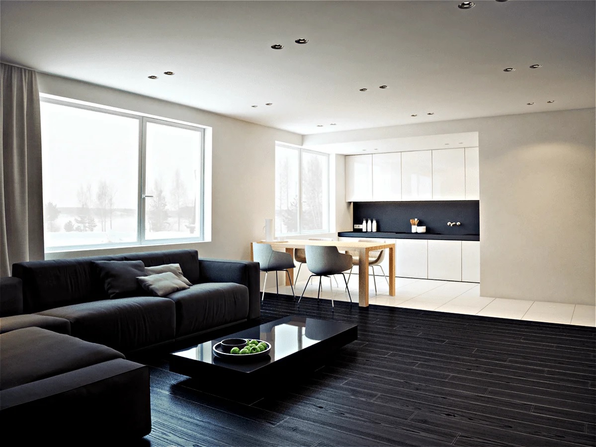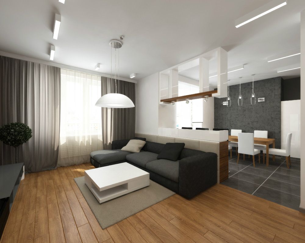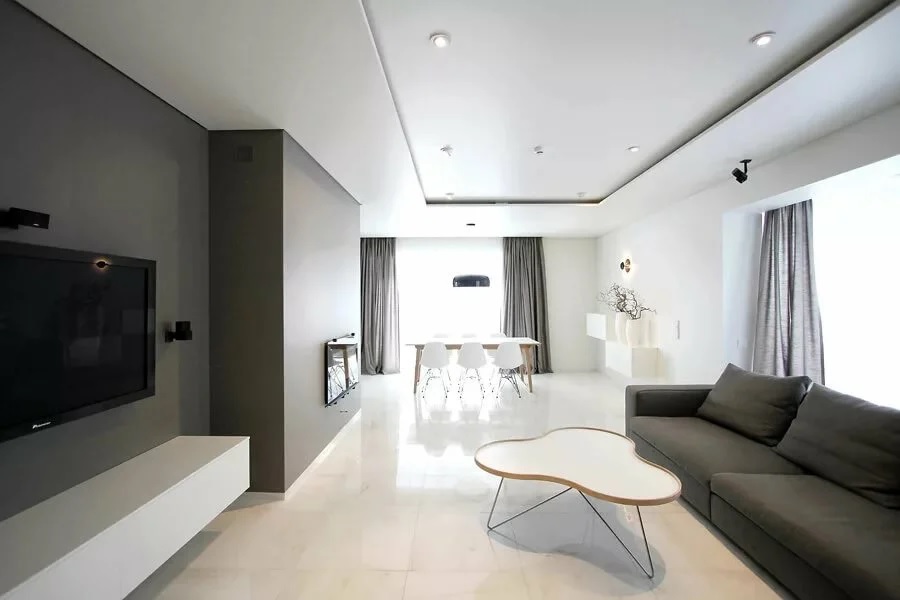 El minimalismo se distingue de otros estilos por varias características comunes. En primer lugar, la creación de dicho interior solo es posible en una habitación espaciosa. El diseño de un apartamento de tres o dos habitaciones debe estar abierto. Si es posible, es necesario eliminar varios pilares y particiones. Si no puede eliminarlos por completo, hacen una demolición parcial, hacen arcos anchos desde puertas estrechas.