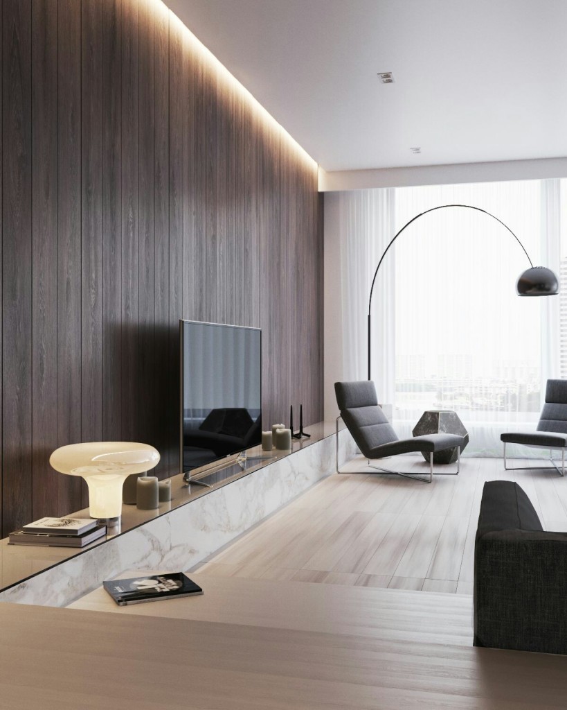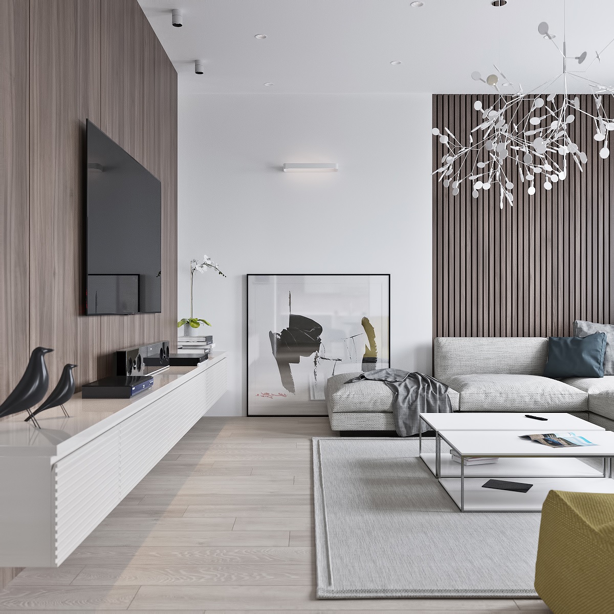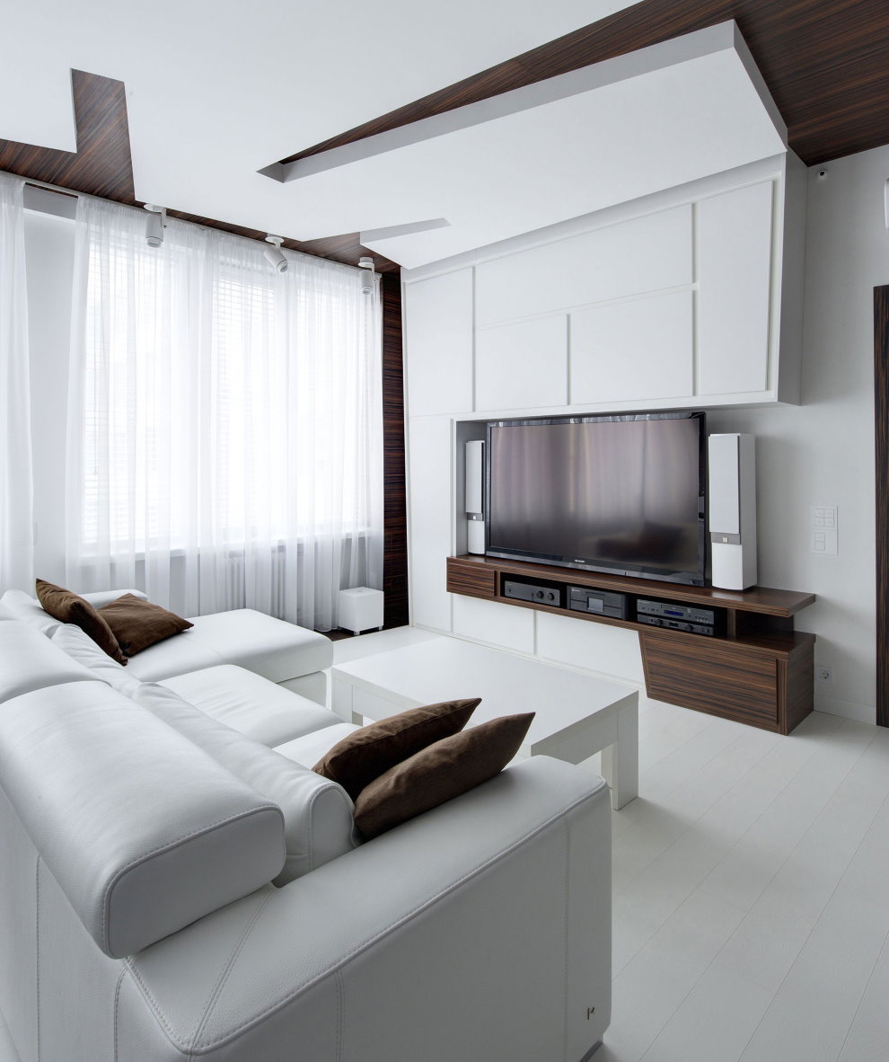 Los salones minimalistas están llenos de belleza oculta. Debe crear una habitación moderna, siguiendo una serie de reglas importantes. Como resultado, la habitación debe ser libre y relajante. La ausencia de pequeñeces inútiles actuará libre y relajante.