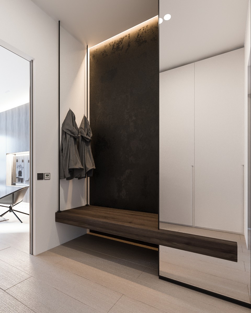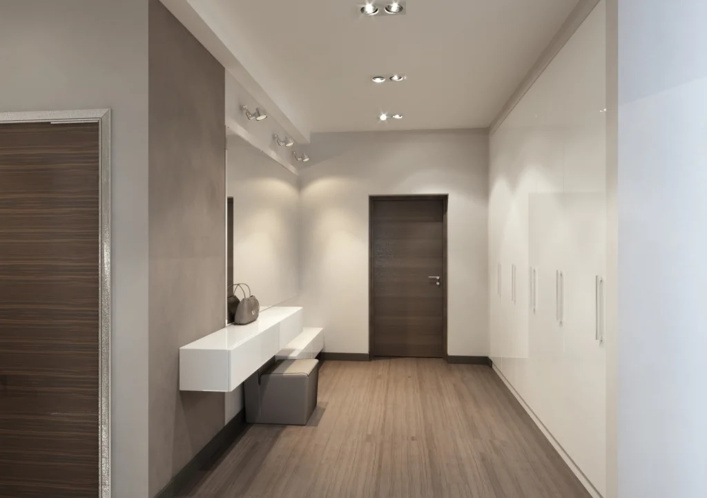 El diseño de la sala de paso en sí no solo debe combinarse armoniosamente con el resto de las habitaciones, sino también cumplir plenamente con los detalles de la sala. Gracias al uso racional del espacio y la funcionalidad, este diseño es el más adecuado para el corredor.
