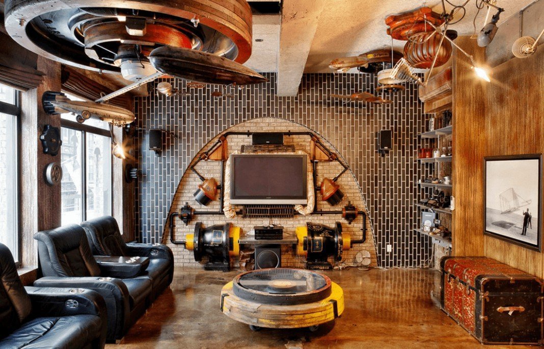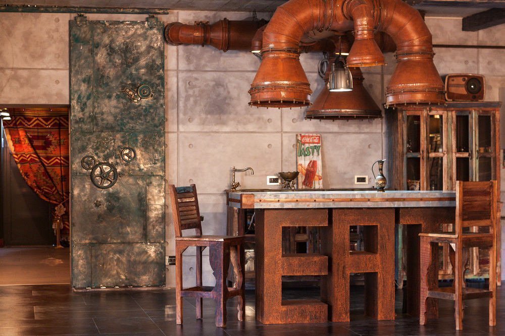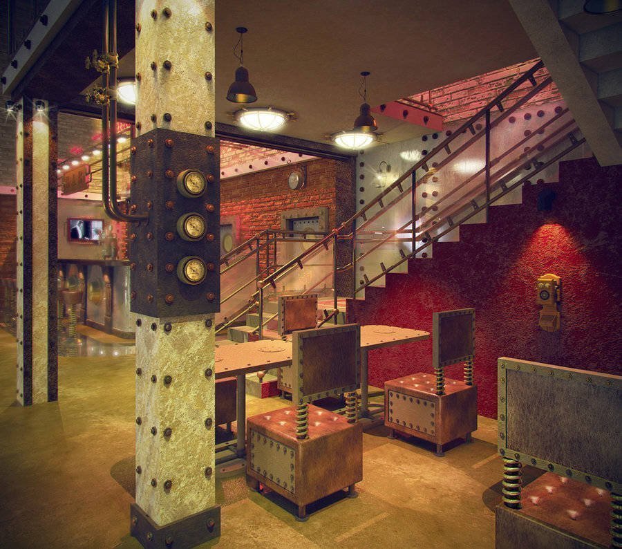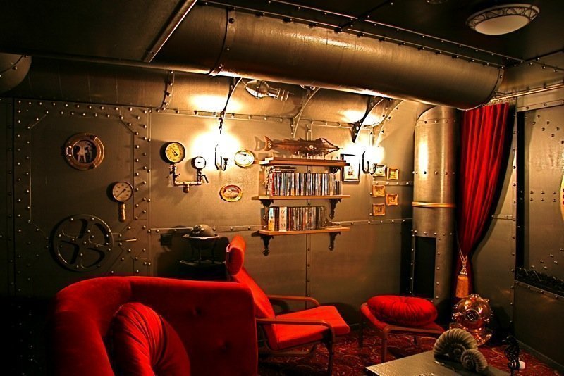 Por cierto, steampunk no es solo una dirección en diseño de interiores, el mismo nombre tiene un estilo característico en ropa, música, cine, pintura y ciencia ficción. Algunos fanáticos van más allá y se unen a la subcultura homónima, que tiene sus propias reglas y cánones.
