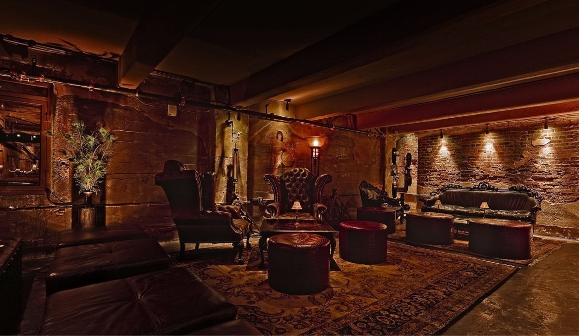De las telas, se prefieren seda, satén, gasa, cuero y lino. En la imagen en color, el marrón está necesariamente presente. En diferentes tonos generalmente ocupa más de la mitad de la habitación. Con la ayuda de medios tonos grises y negros, se logra el efecto del humo en la habitación y se crea una sensación de vapor vertiginoso. En los elementos de decoración, el latón y el bronce están necesariamente presentes.
