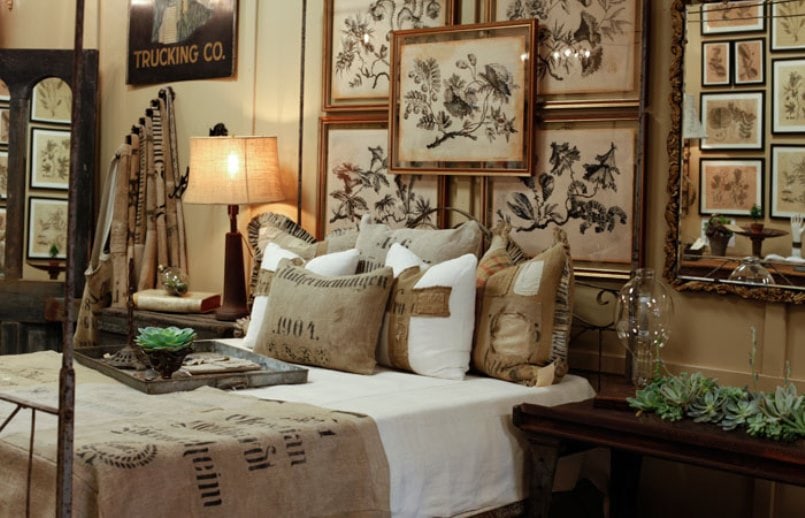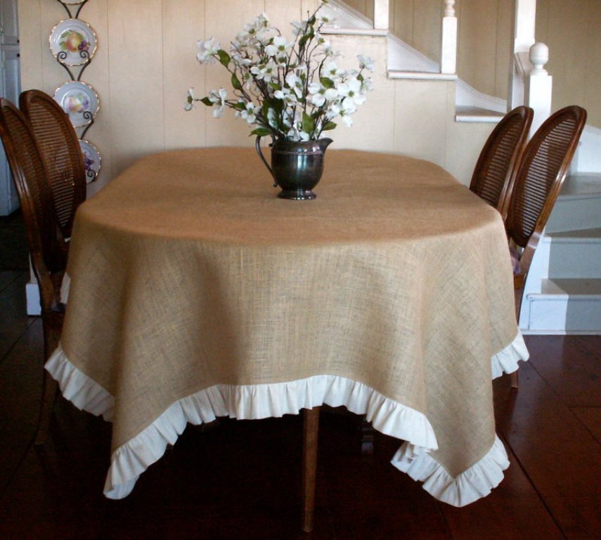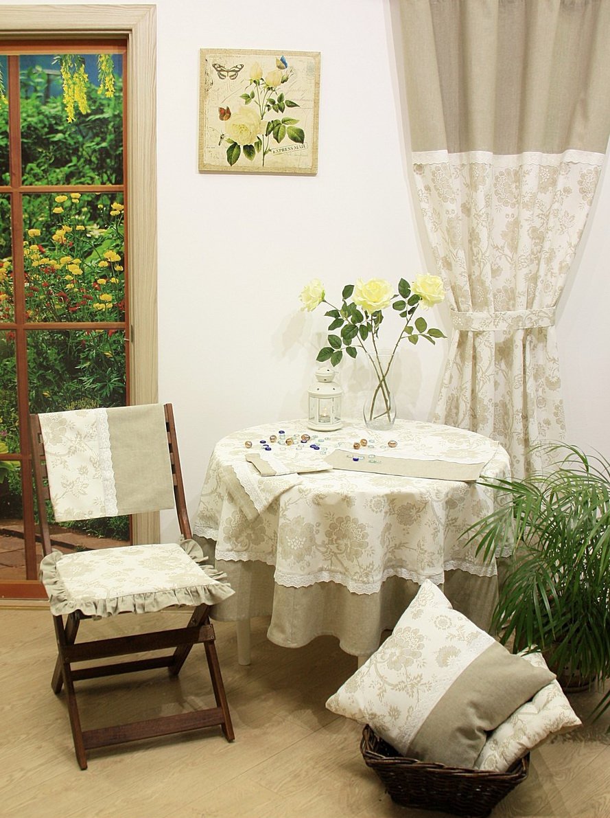 El lino posee durabilidad, resistencia al desgaste, capacidad para eliminar la humedad y el calor. De esta tela cosen ropa que es popular en el calor del verano. El lino tiene una textura algo rugosa, áspera al tacto. La materia se arruga fácilmente, no se mantiene bien y, a veces, se encoge después del lavado. A diferencia del algodón, el lino no se vuelve amarillo con el tiempo, pero conserva su blancura original. La tela no se enrolla, se usa para coser manteles, toallas, ropa de cama hipoalergénica, cortinas y para la fabricación de tapicería de muebles. El lino combina bien con la Provenza y los estilos rústicos, que se encarnan en casas de campo y casas de campo. La arpillera tiene una textura similar. Este material está hecho de lino y yute en una proporción de 1: 1. La arpillera es fuerte, duradera, no se estira y no teme el contacto con la luz solar, el agua y los productos químicos domésticos. Pero debido a la apariencia sin pretensiones de la tela, rara vez se usa en el interior. La arpillera áspera está en armonía con el país, el minimalismo y el estilo ecológico, es decir, con direcciones que gravitan hacia la simplicidad y la naturalidad. Principalmente la tapicería para muebles está hecha de tela.