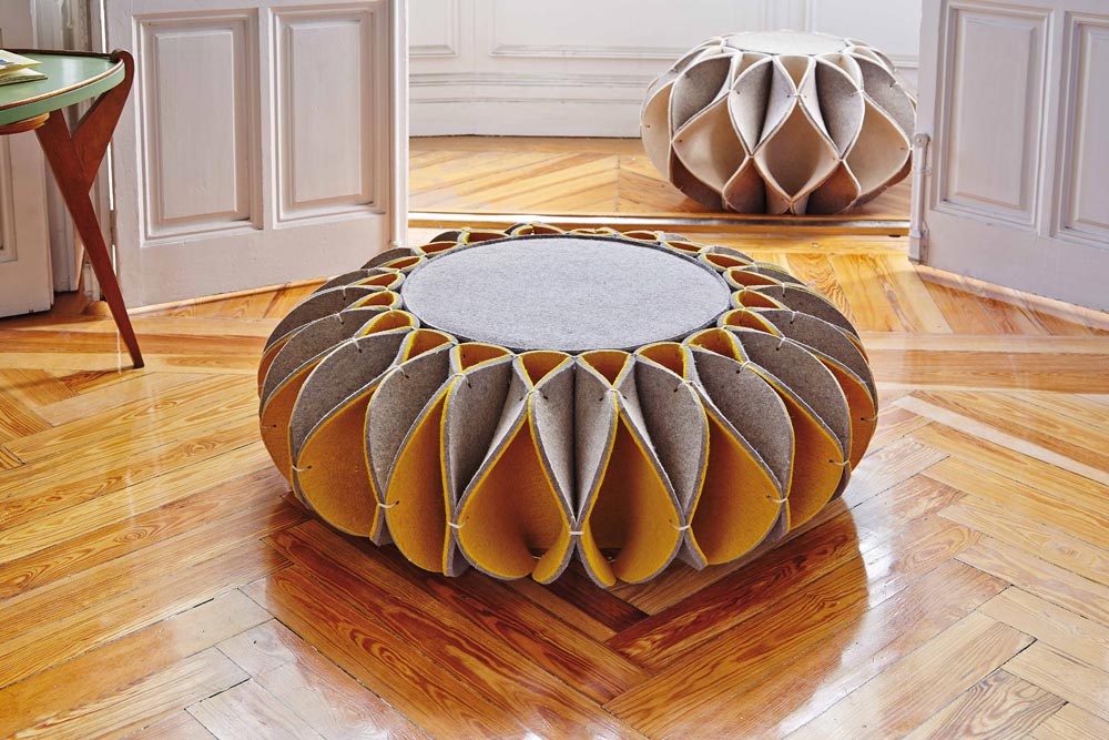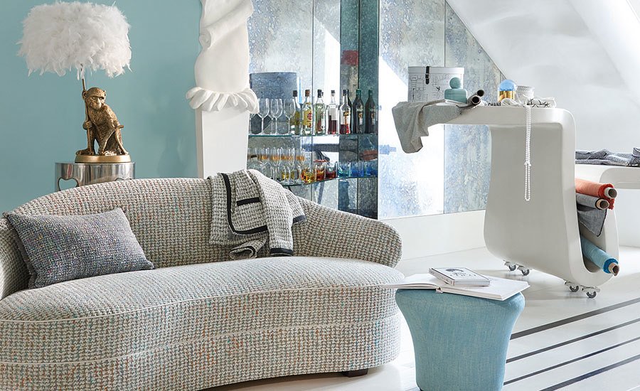 Boucle de crepe o hilo de fantasía. El material tiene una textura rugosa: tejido suelto, que a menudo está decorado con nudos sobresalientes. Externamente voluminoso, tiene un peso pequeño. Sobre todo, el boucle es como un karakul. El material se obtiene de lana, seda, algodón y viscosa. Para la producción de tapicería de muebles, se utiliza poliéster reservado. Buclé retiene perfectamente el calor, no se arruga, no se estira y no está sujeto a contracción. Sin embargo, los bordes de la materia, si no se tratan con un overlock, se desmoronan rápidamente. Los nódulos en la superficie contribuyen a la formación de bocanadas. Boucle se utiliza para coser tapicería y fundas de muebles. Las mantas calientes hechas de este material se calientan bien y crean una comodidad adicional en la habitación.