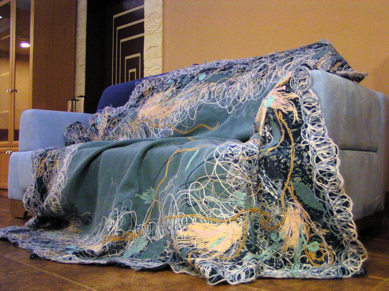 Un producto textil puede convertirse en un auténtico objeto de arte si se coloca correctamente en una sala y forma parte de un grupo de diseño de interiores con acento. Con tela siempre es más cálido, más cómodo y más cómodo que sin él en cualquier habitación.