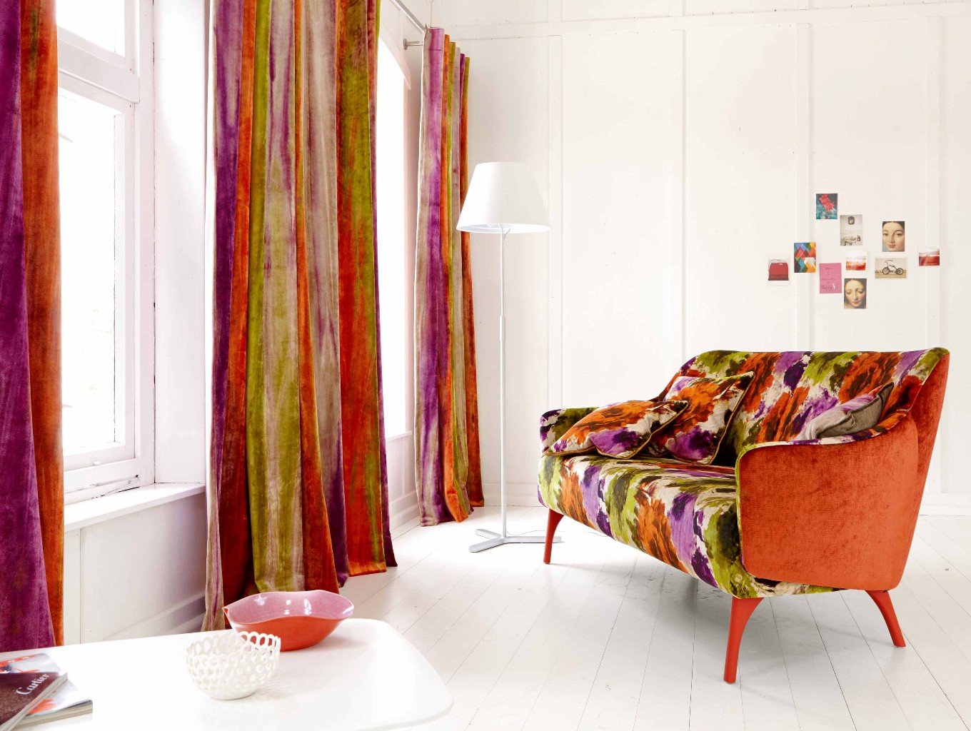 Pesadas cortinas de satén o brocado con dibujos reales, bordadas con hilos de oro y decoradas con borlas, tapicería de terciopelo de muebles tapizados con una regla de carro, papel tapiz de tela con motivos florales, alfombras suaves con adornos ornamentados, magníficos toldos, volantes, lazos, accesorios: todo este esplendor se ha convertido en un sello distintivo una carta de barroco inmoderado que, en su propio ámbito, también se destruyó. En Art Deco, las telas, cuyos pliegues caen libremente con una ligera negligencia, ayudan a dar suavidad y fluidez al interior de las "olas". En el arte pop, los textiles comenzaron a decorarse con patrones geométricos, y la tela en sí estaba pintada con colores ácidos y pegadizos.Fue en la era de este estilo que los diseñadores comenzaron a practicar el uso de materia sintética. Ahora que la palma ha pasado al minimalismo y al constructivismo, los interiores están decorados de manera más modesta y esto afectó nuevamente a las telas.