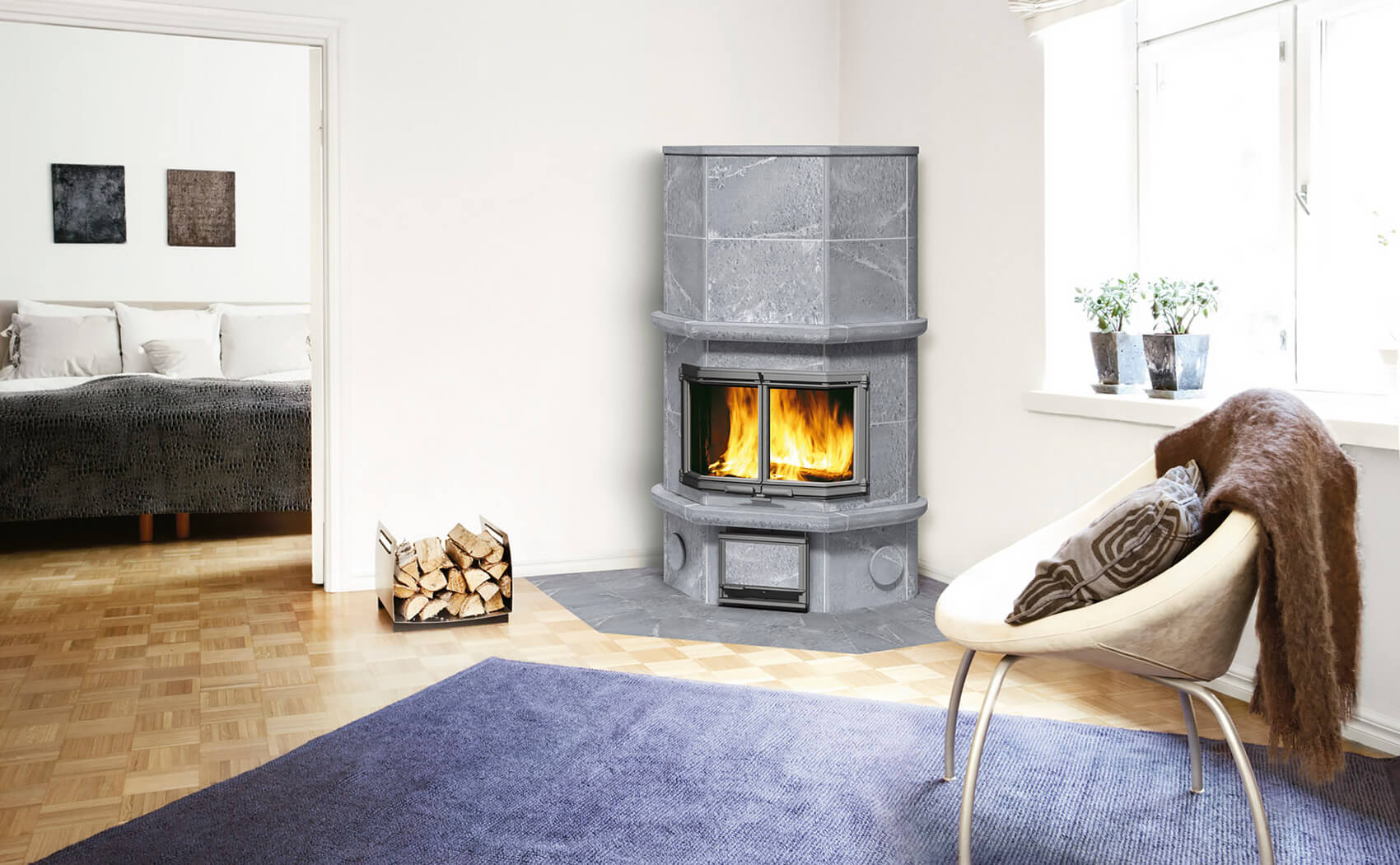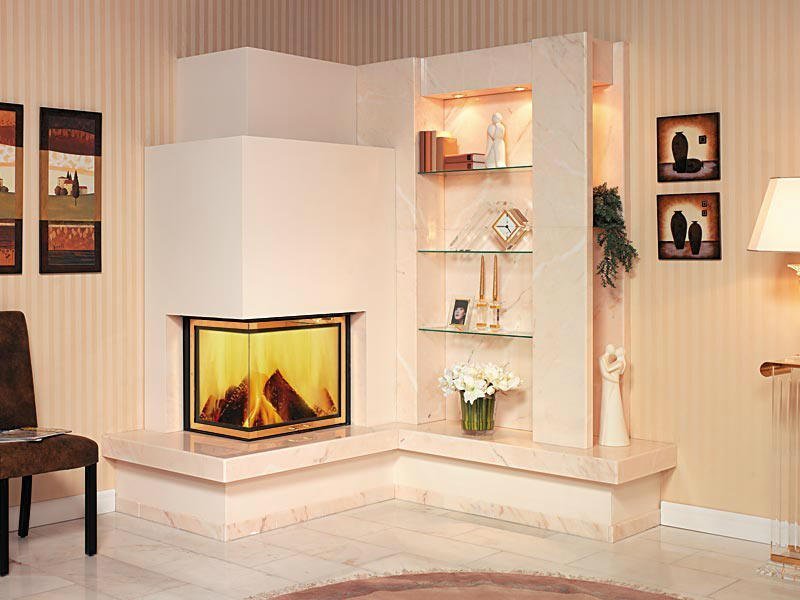 Estos modelos tienen una forma claramente rectangular y están montados en la esquina. Por lo tanto, se ahorra espacio y la chimenea se adapta bien incluso en el interior donde no se proporciona dicho equipo. La chimenea también se puede instalar fácilmente en una pared adyacente.