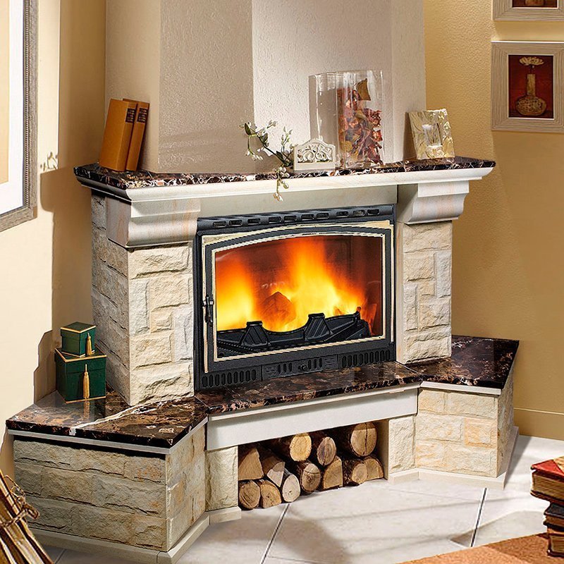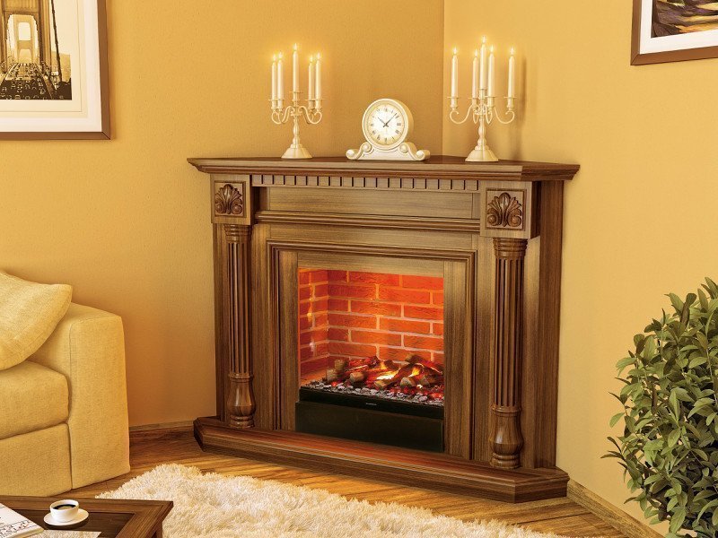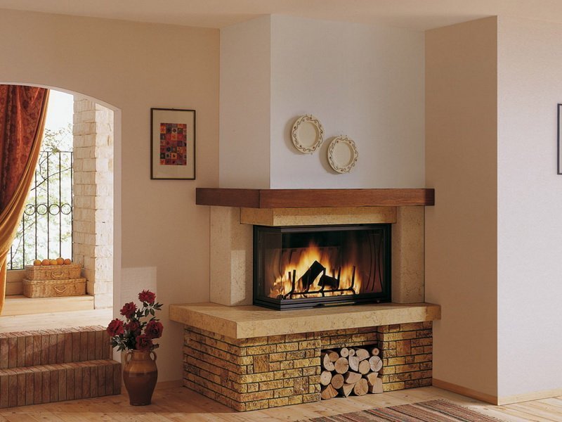 Las ventajas de los modelos de esquina son innegables. El principal es el ahorro significativo en espacio libre. Al estar en la esquina, la chimenea no molesta a nadie, y al mismo tiempo realiza todas sus funciones prácticas y decorativas en su totalidad. Una chimenea en este diseño se encuentra en cualquiera de las paredes.