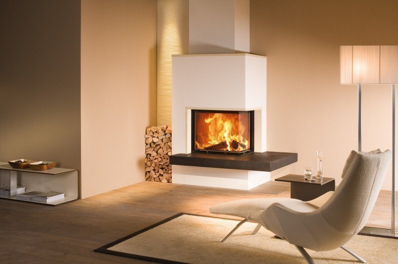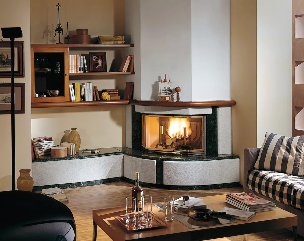 Qué chimenea de esquina elegir para la sala de estar