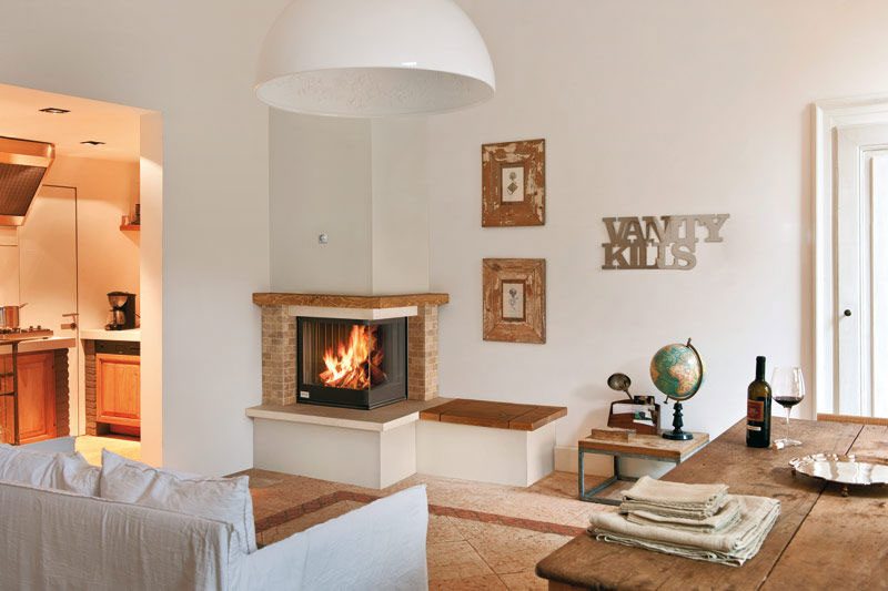 Además de lo anterior, las chimeneas de las islas y las esquinas son populares: se adaptan orgánicamente al interior, convirtiéndose en su parte integral.
