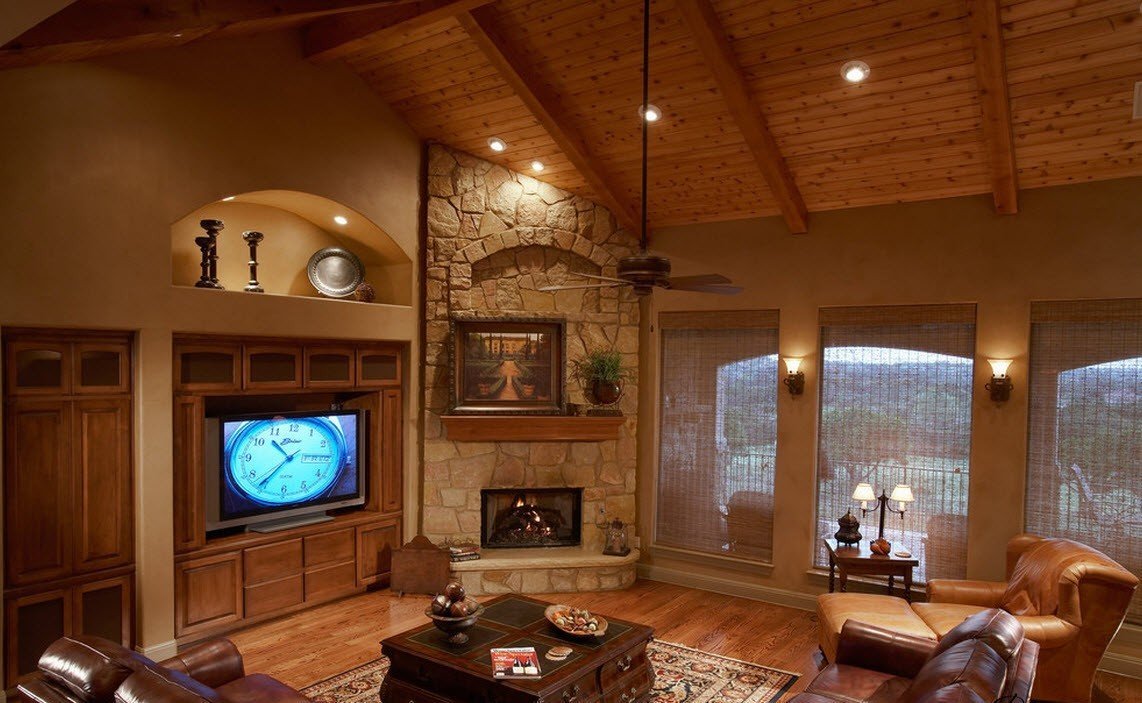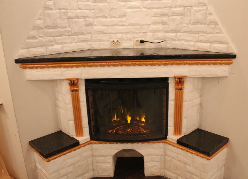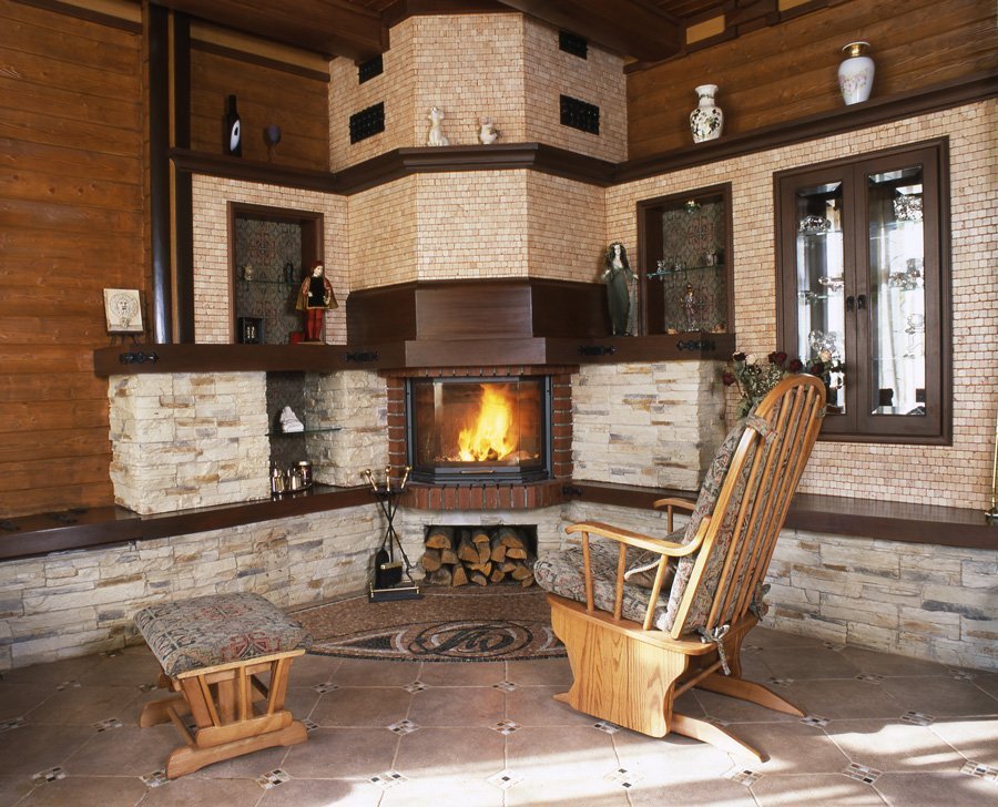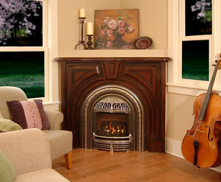 Una chimenea de esquina puede ser natural o puramente decorativa, es decir, no para calentar la casa, sino simplemente para darle una apariencia noble. En este caso, el propietario de la casa se deshace del problema de instalar una chimenea, lo que ahorra mucho tiempo y dinero.