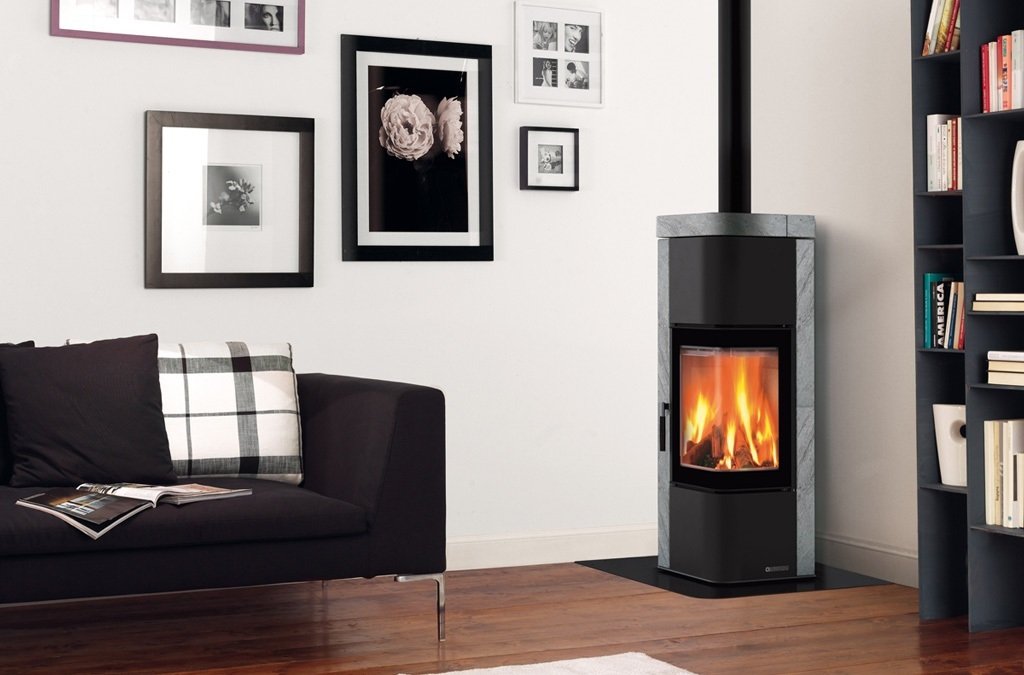 Por supuesto, no se recomienda instalar tales estufas en la sala de estar, incluso con una campana potente, pero esta opción es bastante adecuada para una gran cocina-comedor. La mayoría de las estufas modernas son pequeñas cajas de fuego de metal. Tienen alta disipación de calor y pueden calentar una habitación con un área de hasta 80-90 metros cuadrados.