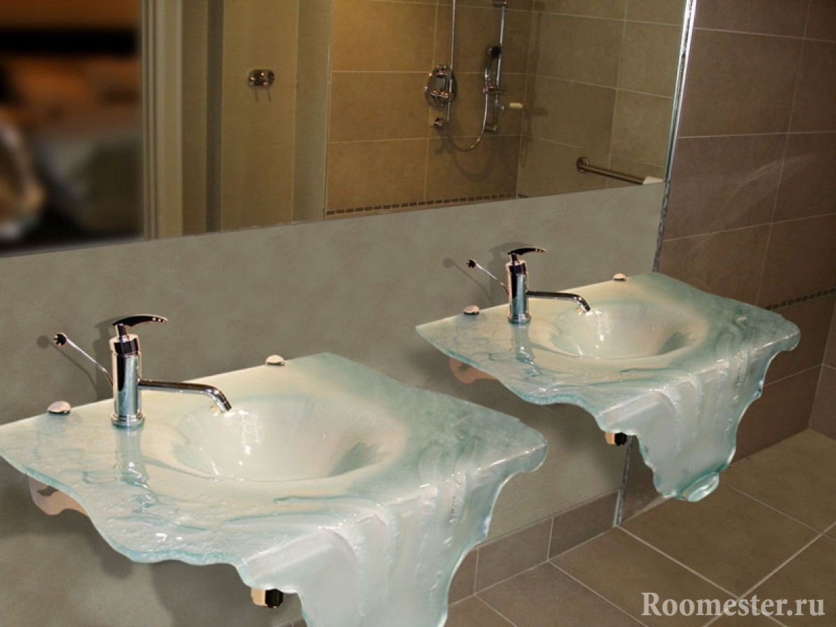 No hay restricciones, ya que todo depende del gusto del propietario. Sin embargo, las muestras de vidrio deben tener cuidado. El cristal frágil puede dañar a los niños pequeños. Y la opción más cara se considera un fregadero de élite hecho de piedra natural. Sin embargo, si será una imitación talentosa, la decoración de un baño elegante no perderá nada. El material duradero enfatiza favorablemente la lujosa decoración de la habitación. Sus propiedades operativas complacerán a los propietarios durante mucho tiempo, conservando el valor artístico de la decoración.Las desventajas de las esculturas de piedra incluyen su peso y la porosidad de la estructura. Esto último implica obstruir el tazón con suciedad doméstica. Los productos exclusivos requieren un cuidado personal cuidadoso.