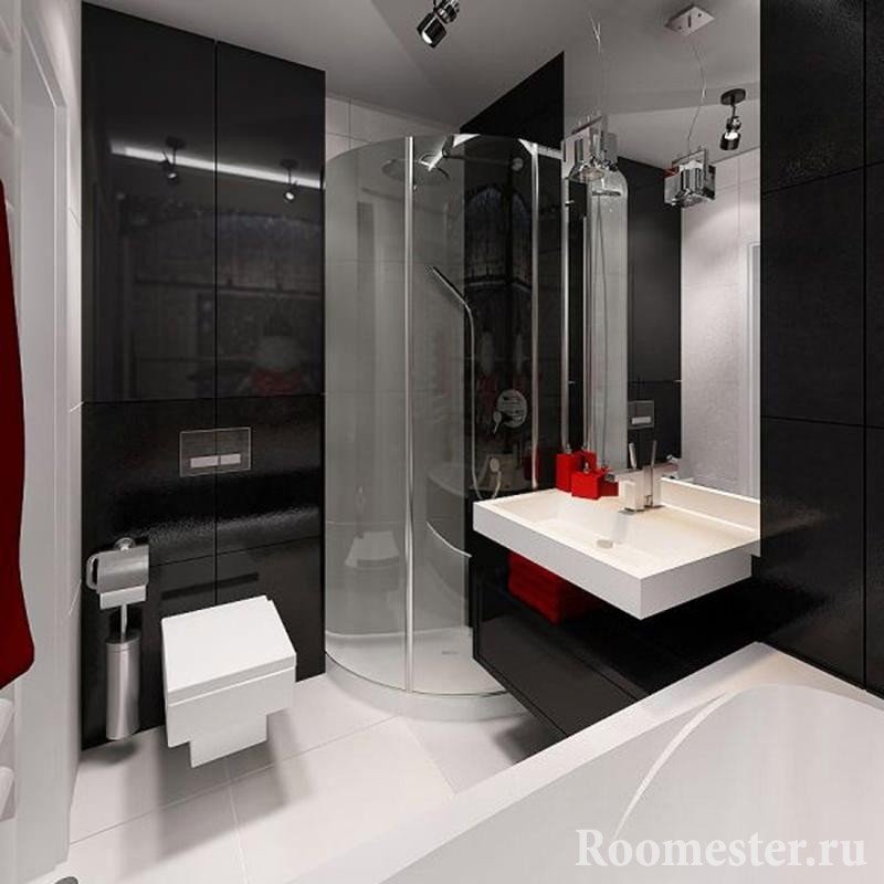 Una habitación con dimensiones modestas implica varios puntos interesantes. Por lo tanto, la bañera se reemplaza con una cabina de ducha de configuración angular con desagüe en el piso, y el diseño clásico del inodoro con su instalación. O conformarse con una opción de baño sedentario. Esto le permite organizar mejor su espacio limitado. Como materiales de acabado, es mejor usar paneles de luz con un patrón pequeño. Se recomienda encarecidamente el uso de espejos que expandan visualmente el volumen de la habitación. Junto con una potente iluminación brillante, crean la ilusión de amplitud en varios metros cuadrados. Incluso podría ser una puerta con un panel de espejo. Es importante usar acentos pegadizos en las esquinas para que los ojos tengan algo que atrapar. Incluso puede ser detalles de latón en estilo retro. Su uso permite a los propietarios crear un concepto original del siglo anterior.