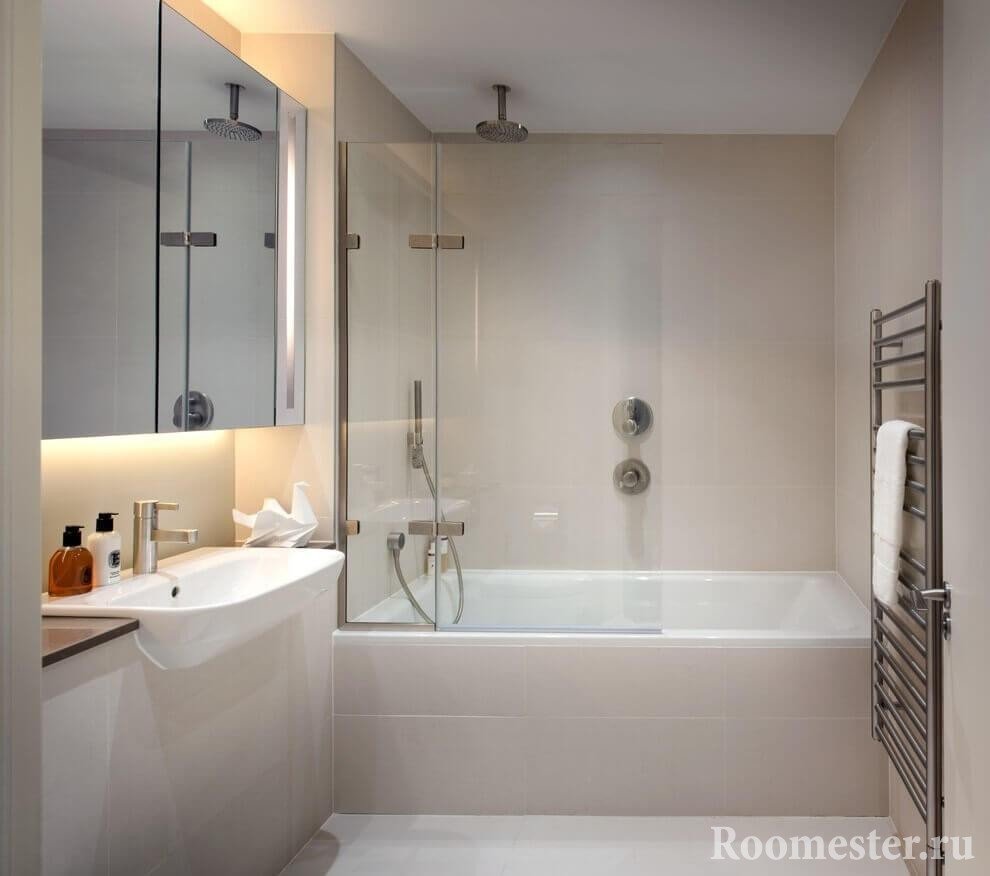 Después de determinar con un modelo de toallero calentado para la decoración en un baño acogedor, puede pensar en el diseño. Es necesario seleccionarlo de acuerdo con otros equipos de plomería, ya que una combinación de elementos diversos se verá insípida. También vale la pena agregar diseños de muebles y varios accesorios. Por ejemplo, un modelo de gabinete de vidrio se combinará maravillosamente con un toallero cromado.Puede agregar originalidad utilizando una cortina de vinilo a prueba de humedad. Varias aplicaciones también son bienvenidas.