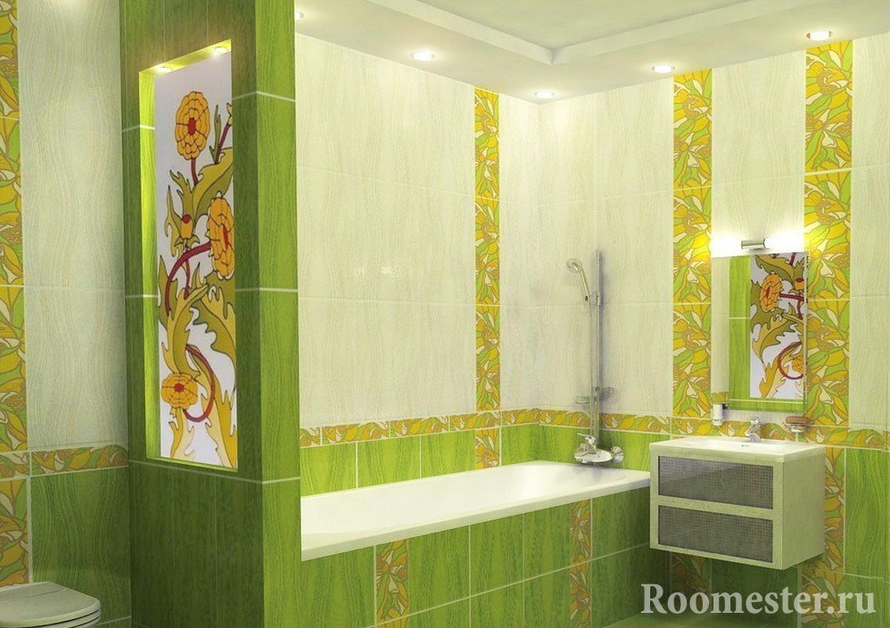 Varios paneles y otras decoraciones similares animan notablemente el aburrido fondo de la textura de un solo color de la baldosa. Para agregar un giro a la imagen general, deben colocarse a una distancia fija. Por lo tanto, se respeta la armonía y la simetría del dibujo. A menudo, la imagen contiene un concepto único, seleccionado de acuerdo con los gustos del propietario. Se puede colocar tanto horizontalmente como en cualquier otra dirección. Por ejemplo, congelación significa una estructura de panel vertical. Entre las muchas opciones se suelen distinguir presupuestos suaves, prácticos, funcionales y sofisticados patrones de bajorrelieve. Al mismo tiempo, las decoraciones planas y convexas pueden equiparse adicionalmente con soportes universales en forma de estantes, así como ganchos para toallas.