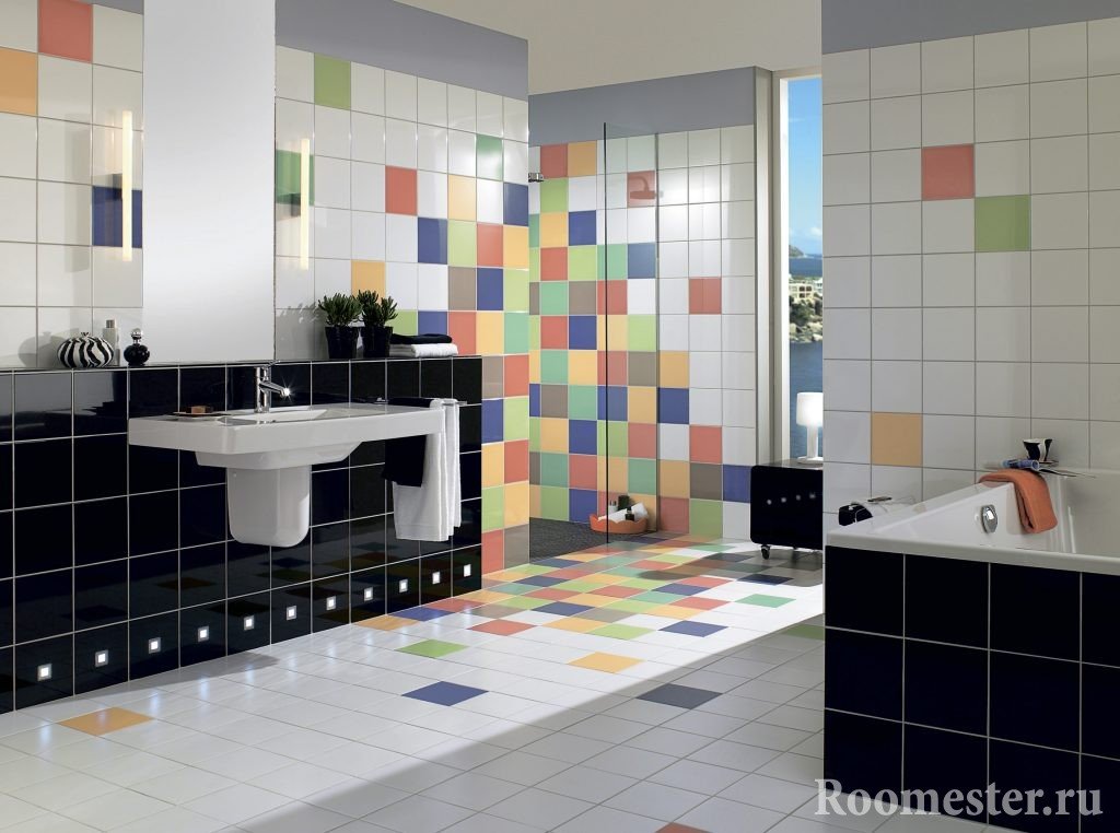 Un patrón familiar para colocar baldosas es un patrón de tablero de ajedrez de varios tonos de color y paredes decorativas. Las pequeñas habitaciones también dan la bienvenida a la decoración de un baño minimalista con finos mosaicos. Un adorno similar en azulejos grandes anima el diseño, contribuye a una sensación de amplitud. No menos elementos interesantes para decorar el interior de la habitación son las tecnologías decorativas. Con su ayuda, puede crear una imagen holística de un diseño cálido. Considere algunas variedades con más detalle: