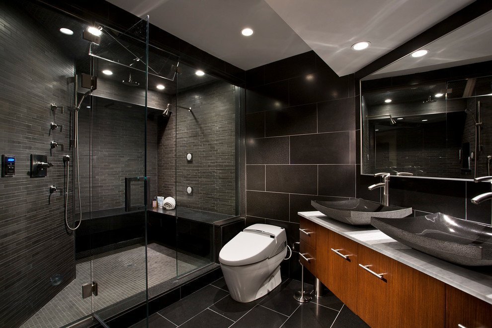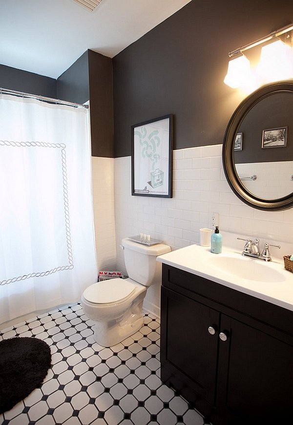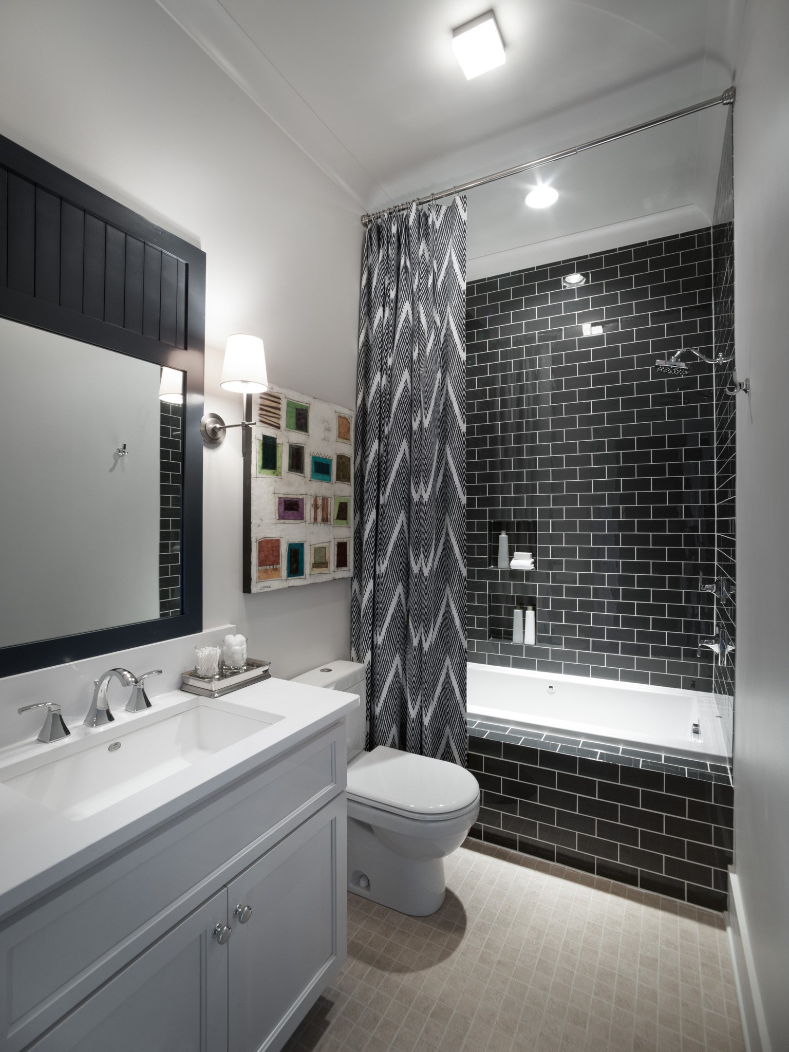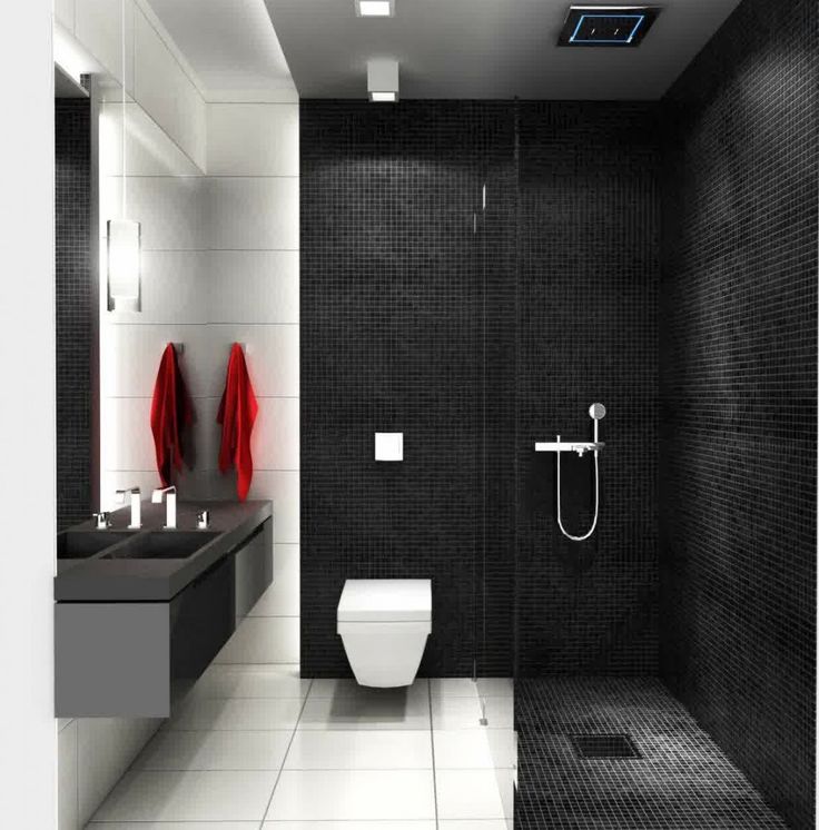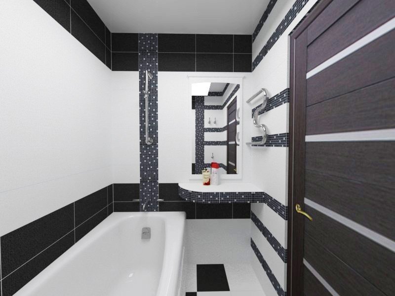 El diseño de los baños con azulejos no es particularmente limitado, pero es importante que no haya sensación de estrechamiento de las paredes o techo que sobresalga. Esto sucede cuando el piso negro y el techo con paredes de luz o espejo.