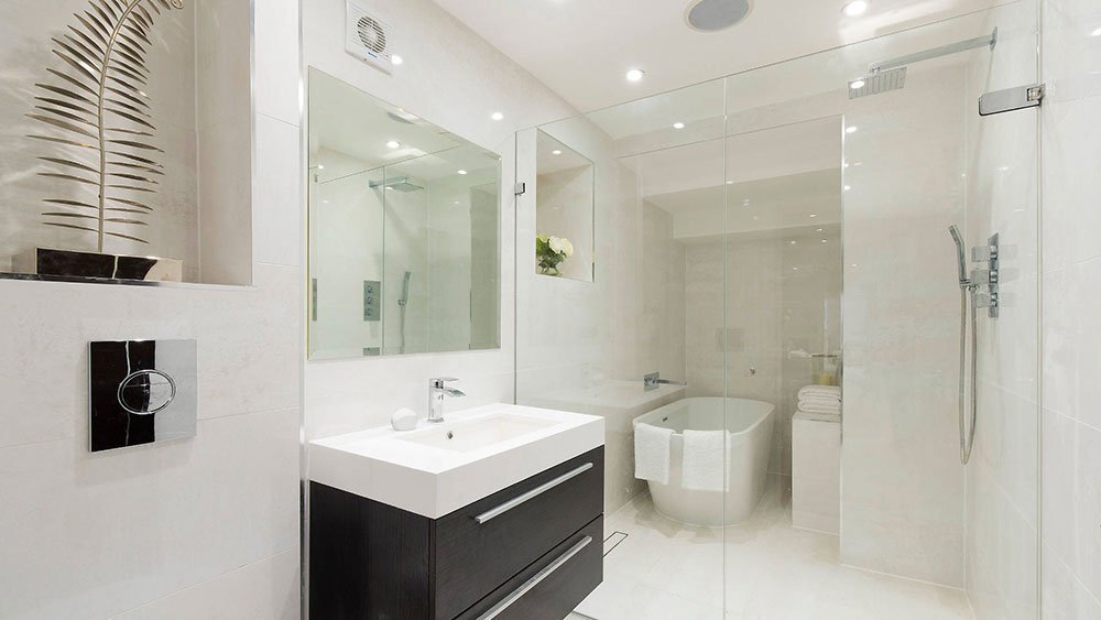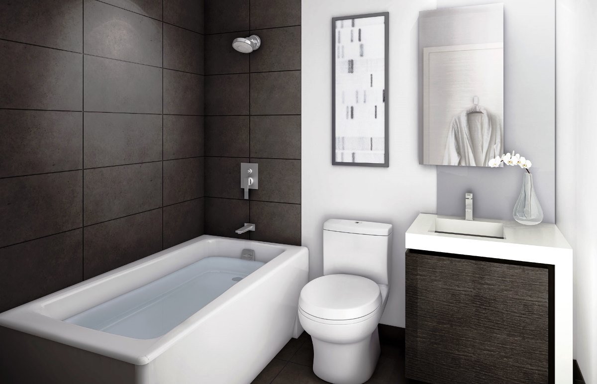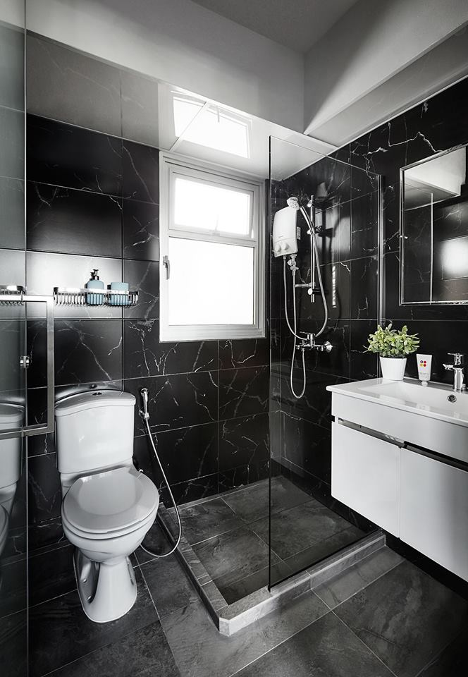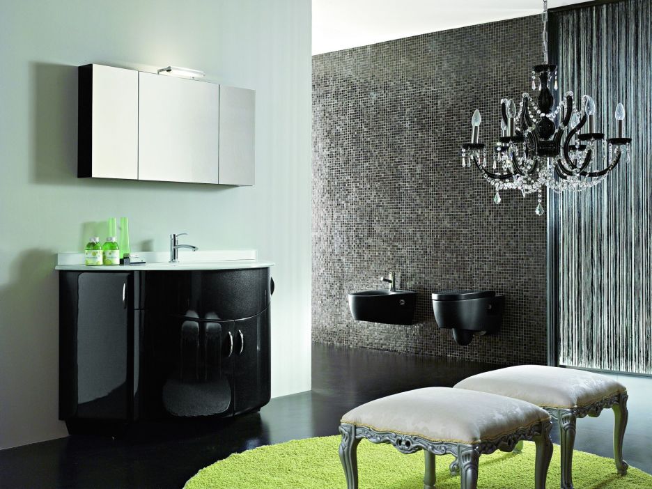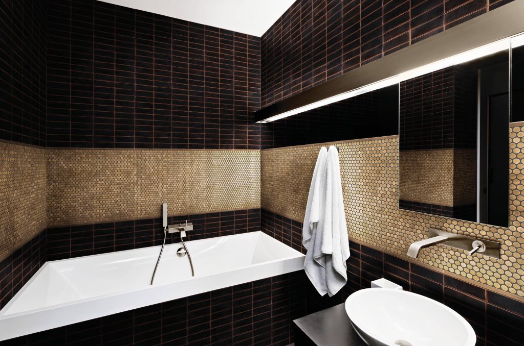 El diseño de los baños con azulejos no es particularmente limitado, pero es importante que no haya sensación de estrechamiento de las paredes o techo que sobresalga. Esto sucede cuando el piso negro y el techo con paredes de luz o espejo.