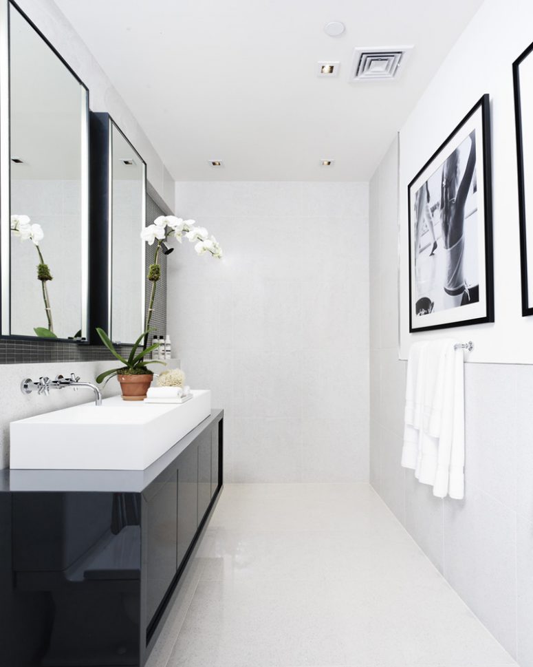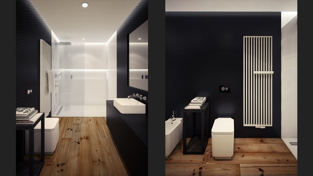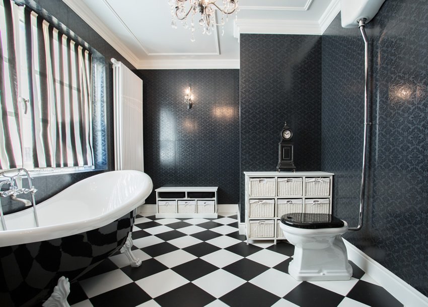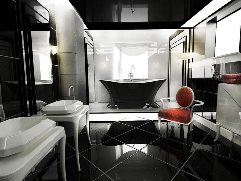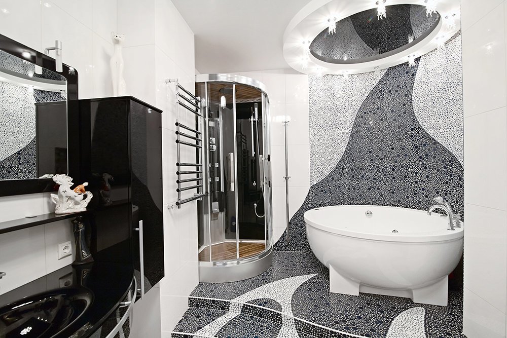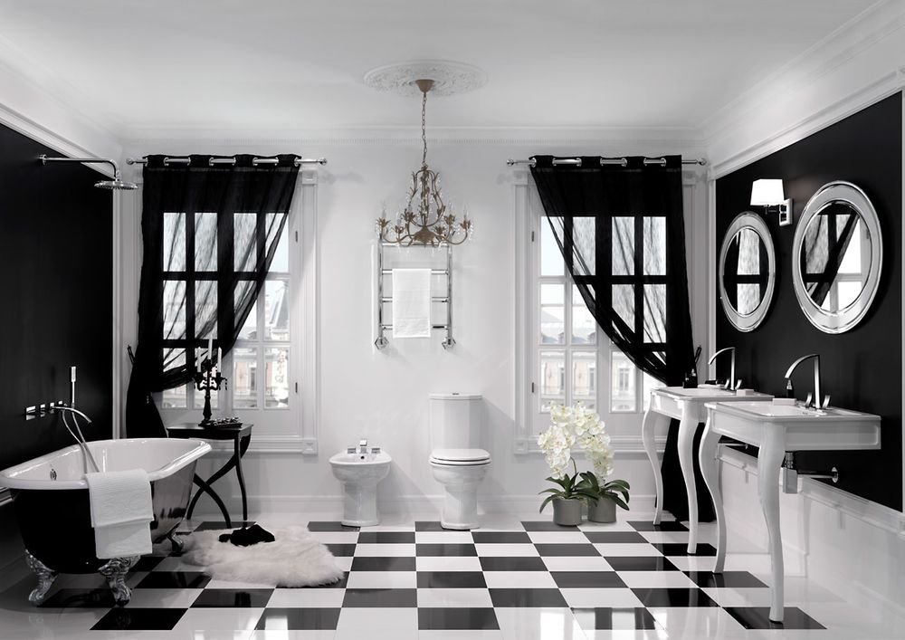 El interior en blanco y negro se basa en un juego de contrastes de colores completamente opuestos. La combinación clásica crea un ambiente elegante y lujoso en el que hay un orden perfecto, dinamismo y belleza mística. Si desea equipar un baño en colores blanco y negro, busque proyectos de diseño exitosos similares en diseño. Para evitar descuidos y errores, primero es necesario desarrollar un bosquejo del entorno futuro de la habitación.