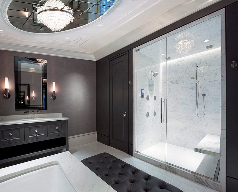 Es más fácil hacer ajustes en la etapa de desarrollo del proyecto que tratar de cambiar los defectos en una habitación mal diseñada. Con solo dos colores contrastantes, blanco y negro, puede crear un diseño extraordinario y exclusivo, en casi cualquier estilo. Esquema de color monocromo en el interior de los baños, durante mucho tiempo no pierde relevancia y popularidad con los años.