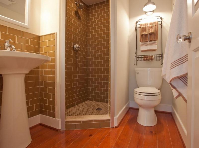 Al elegir baldosas cerámicas para paredes y pisos, es mejor dar preferencia a las opciones de gran formato. Pequeños fragmentos, y aún más mosaicos, reducen un espacio pequeño, cargan innecesariamente la habitación con líneas horizontales y verticales. Para un aumento visual en el área, los materiales de revestimiento con una superficie brillante son adecuados. Las ventajas adicionales de su uso en comparación con las variedades mates son la facilidad de mantenimiento, menos la sedimentación del polvo.