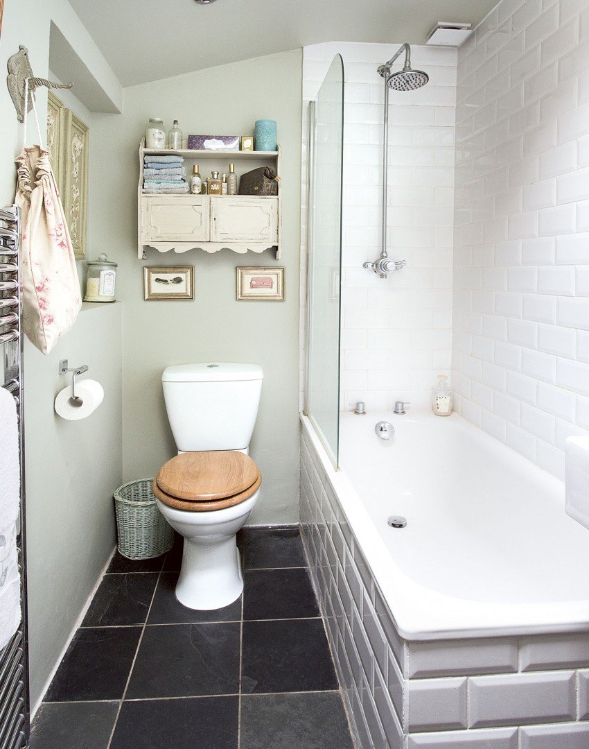 Al amueblar un baño pequeño, es mejor quedarse en estructuras suspendidas que no llegan al piso, elegir tonos claros de materiales, fachadas brillantes. Los muebles para las piernas pintados en tonos neutros (blanco, gris claro, rosa apagado, menta, lavanda blanqueada) también son apropiados, especialmente si el diseño del baño se adapta al país, al estilo europeo moderno o al romanticismo.