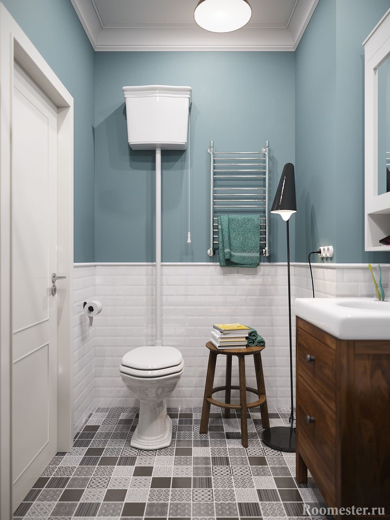 La iluminación es importante, lo que muchos subestiman. Las lámparas correctamente ubicadas y seleccionadas proporcionarán una iluminación normal, harán que el interior del baño sea más cómodo, enfatizarán el estilo elegido, ayudarán a ocultar o resaltar elementos individuales, aumentarán o disminuirán visualmente la habitación.