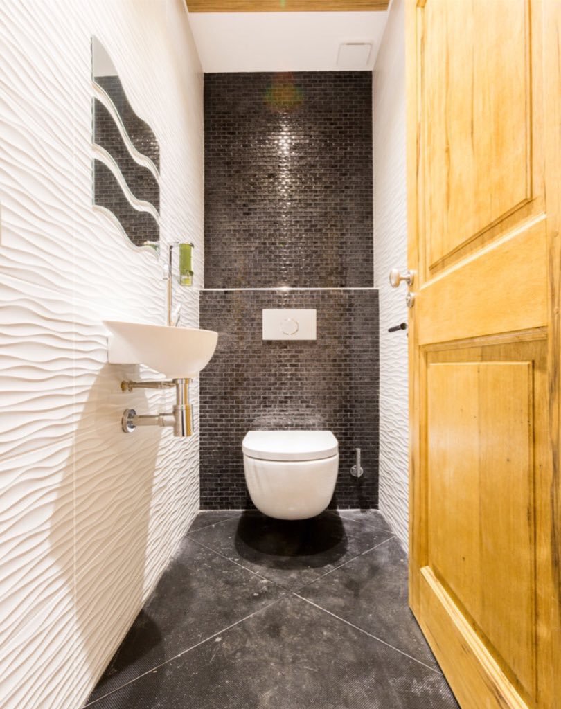 oblicuo: un diseño similar se monta en un ángulo agudo con respecto a la pared posterior o lateral. Esta opción es óptima si las tuberías más delgadas se alejan del elevador, pero la construcción de una pared completa no es práctica. En algunos casos, deberá "mover" ligeramente la taza del inodoro a la pared opuesta;