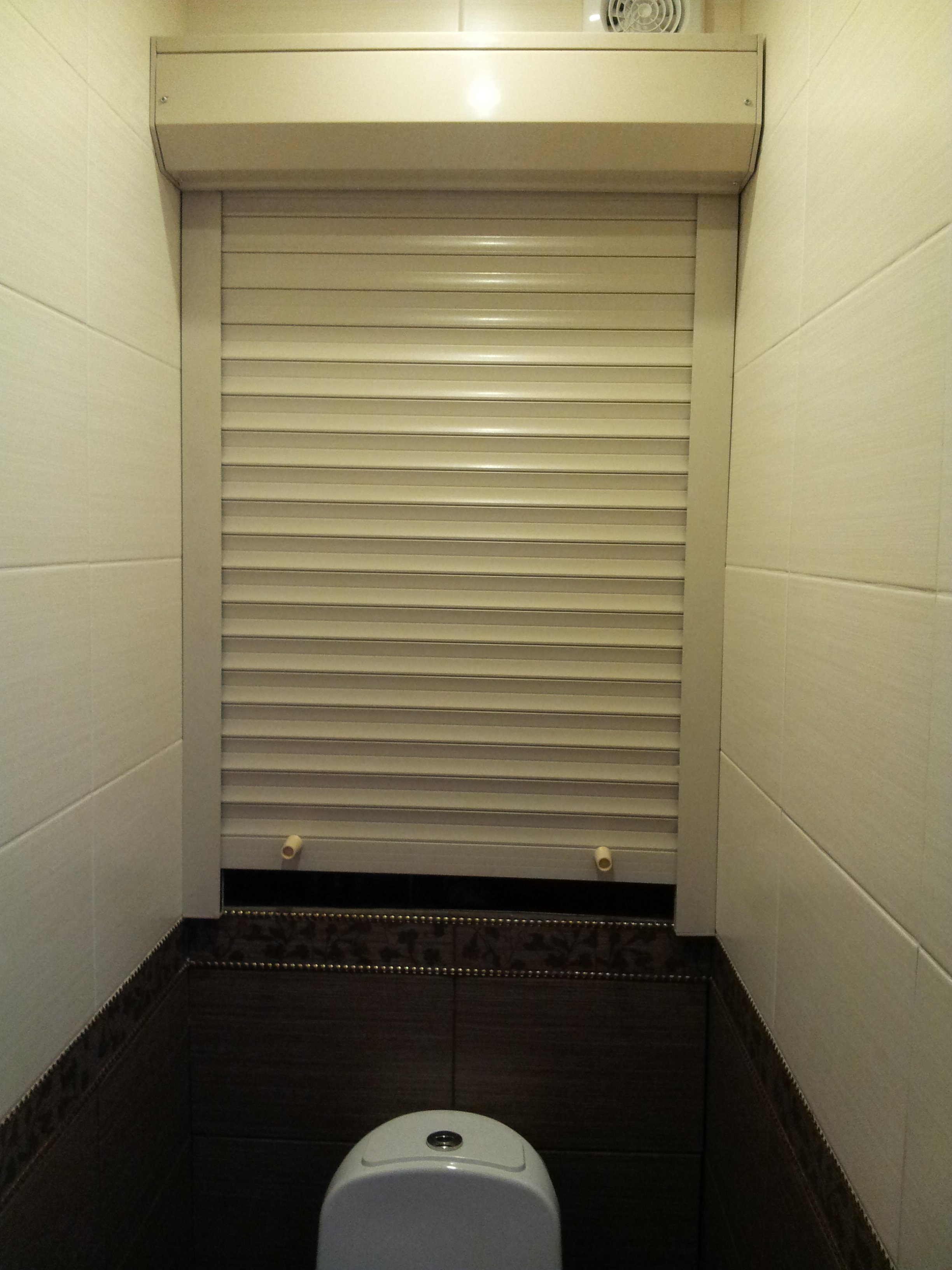 Las persianas enrollables son perfectas para baños apretados, ya que no interfieren en absoluto, incluso cuando están completamente abiertas. El plástico es económico, la madera y el metal tienen un precio más sólido. El metal crea una excelente insonorización de la habitación, el árbol le da una apariencia hermosa, pero requiere revestimientos especiales para evitar la destrucción debido a la humedad.