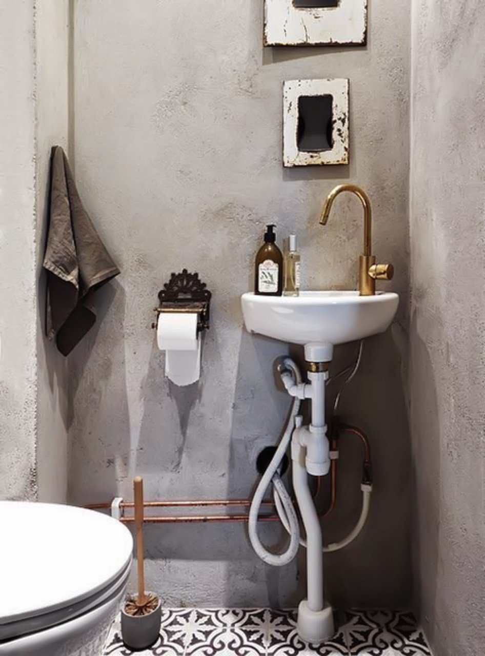 Las comunicaciones abiertas en el baño, el baño combinado no se ven muy estéticamente agradables, decorando solo los interiores de los estilos loft, industriales y brutales. En casos raros, están amurallados directamente en la pared, lo cual es bastante peligroso si ocurre un accidente repentinamente, en el resto están ocultos. Hay varias opciones, tecnologías, cómo cerrar las tuberías en el inodoro y otras habitaciones sanitarias.