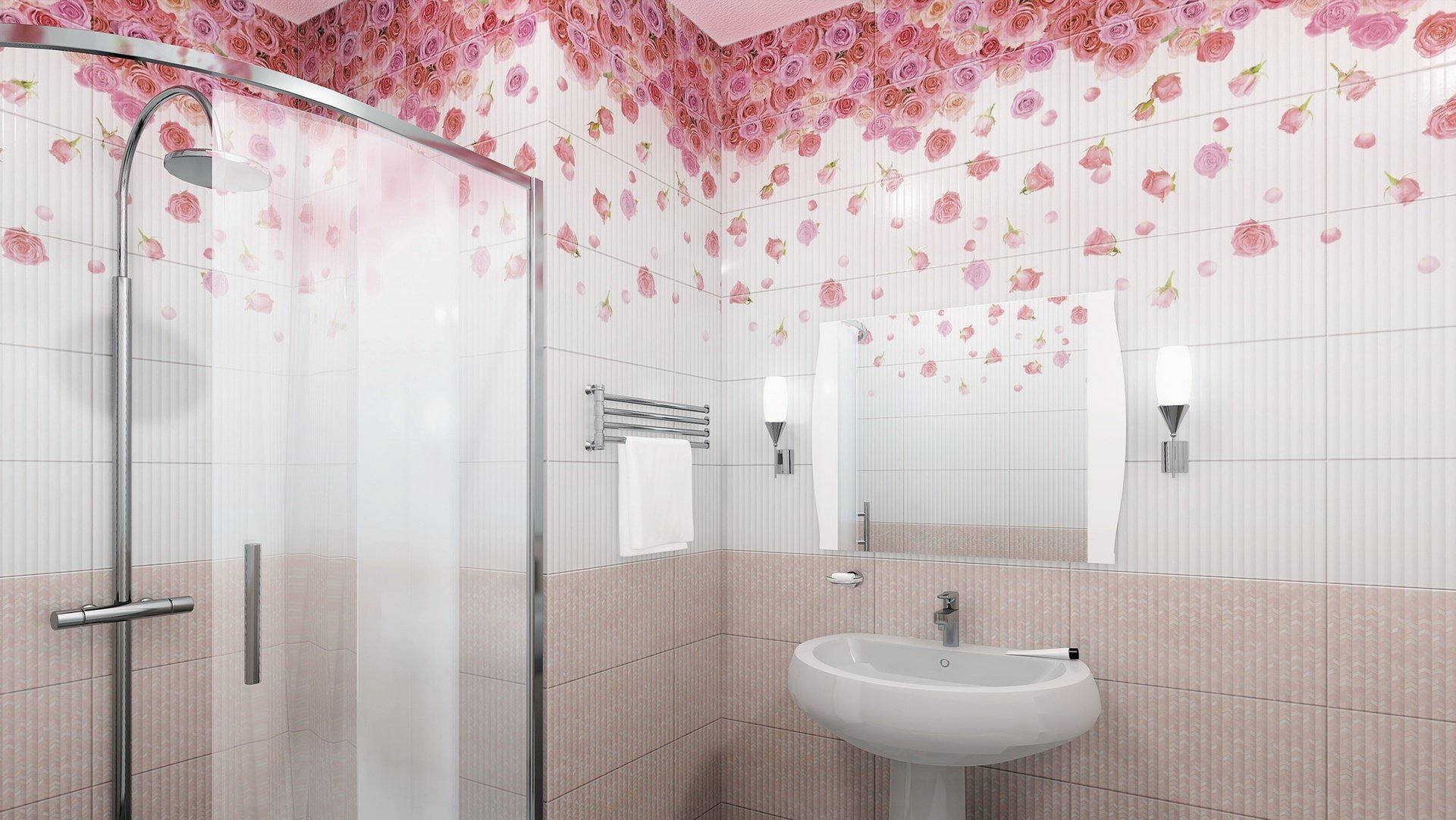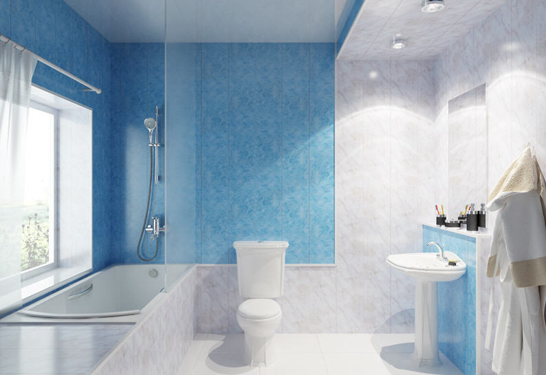 Estos últimos, por todo lo demás, tienen beneficios puramente prácticos. Una hábil combinación de colores le permite ajustar visualmente la forma y el tamaño de la habitación. Las paredes estrechas se verán más anchas si el plástico se coloca con rayas horizontales contrastantes, las paredes oscuras decoradas con accesorios blancos “retrocederán” visualmente y agregarán un baño voluminoso. Al mismo tiempo, los tonos claros aumentarán visualmente la habitación.