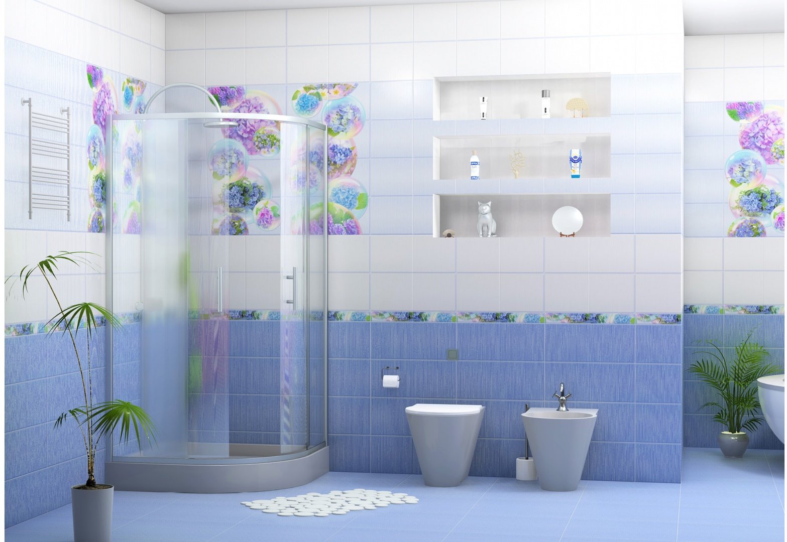 color azul: se ve muy bien junto al blanco, negro, azul, turquesa; este diseño será ideal para un inodoro de estilo mediterráneo;