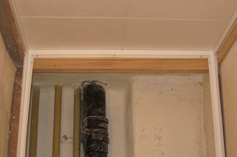 material para crear el marco: es conveniente dar preferencia a los rieles o perfiles metálicos con una sección transversal de 20x50 mm.Un perfil delgado maximizará el espacio del inodoro o baño combinado. Al calcular el número de listones, debe considerar el marco del techo, así como la caja decorativa, enmascarando las tuberías;